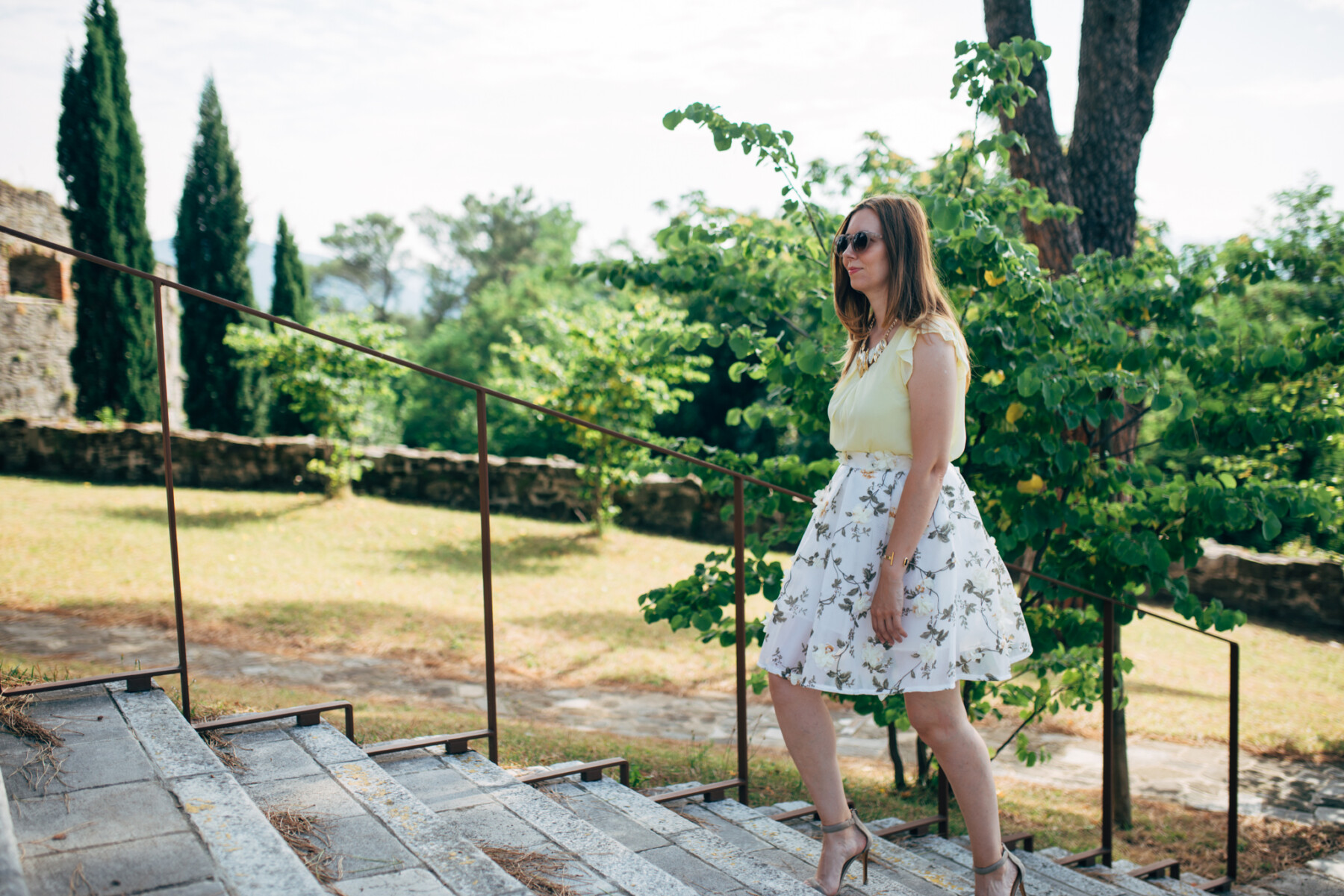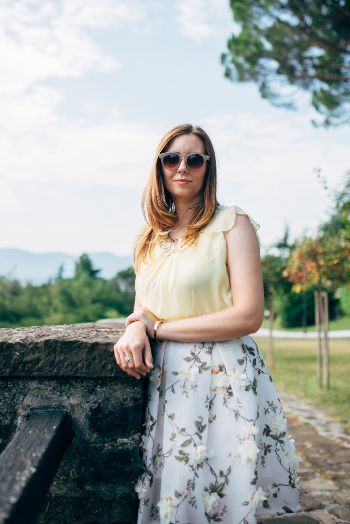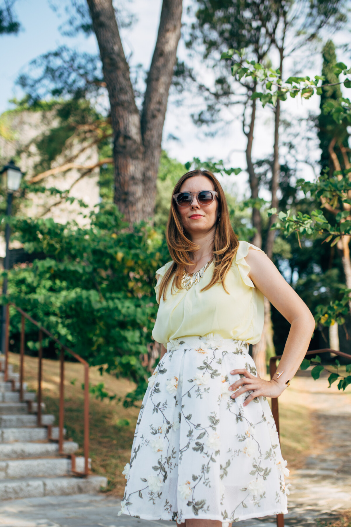 Riguardando il mio look invece ho optato per una gonna a ruota, che trovo molto bella con questi fiori in 3D. Ho abbinato la gonna al top giallo. Le stampe in 3D sono andate molto di moda l’autunno e l’ inverno precedente come anche in primavera ed estate, ma a me questa stampa in 3D piace talmente tanto che mi sono già presa un altro vestito con i fiori in 3D, e presto lo vedrete in uno dei miei futuri outfit!