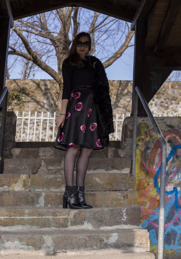 U proslosti ste mogli vec vidjeti moje outfit s midi suknjama i danas predlazem jedan. Ovaj put u potpuno crnoj boji sa cvjetnim printom na suknji. Da li vam se svidja?