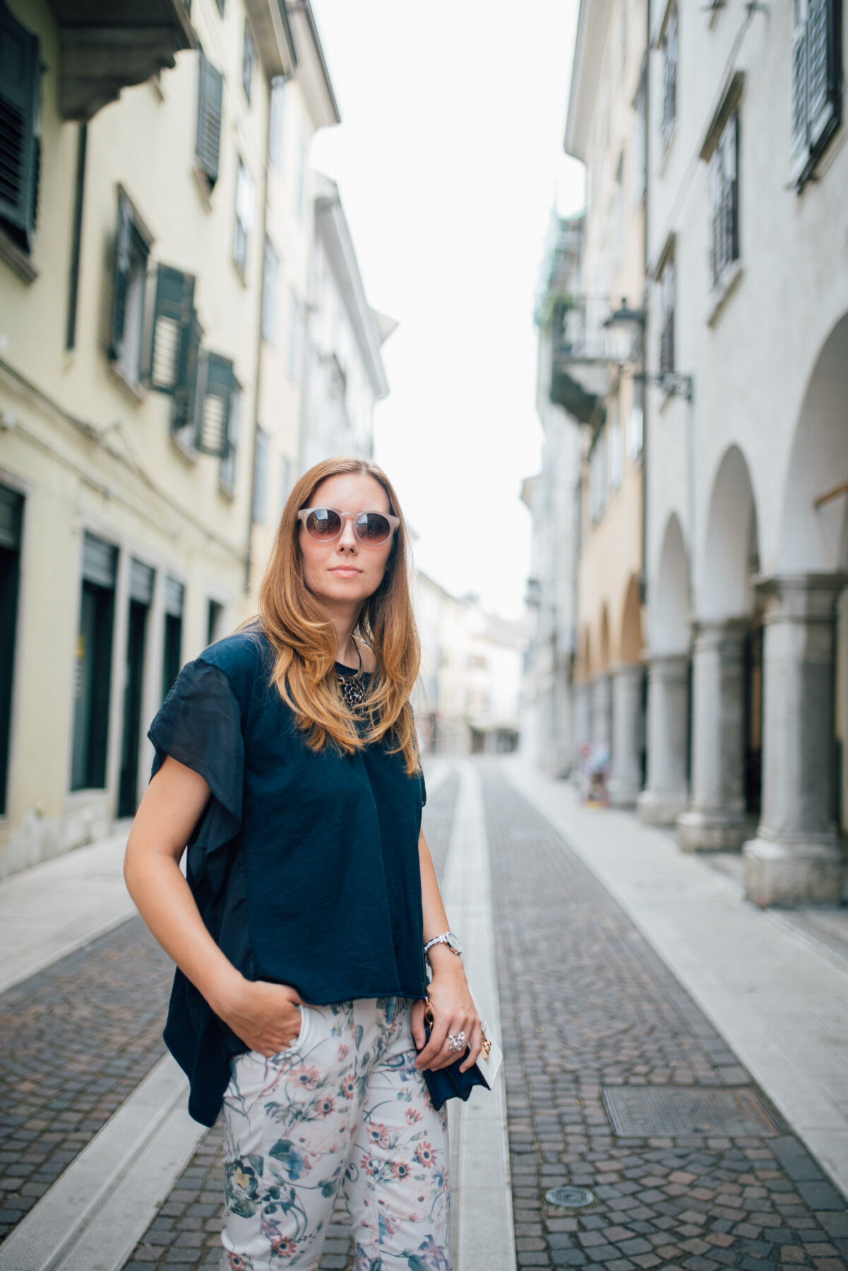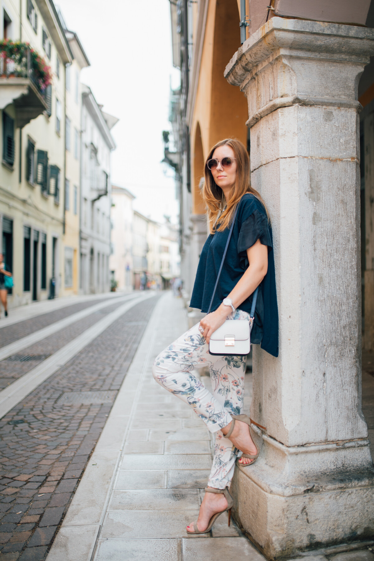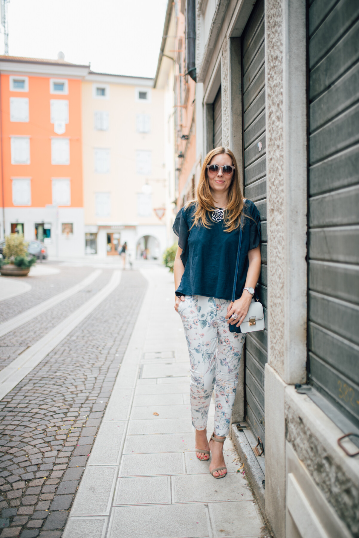 Le vacanze sono finite e si ritorna alla routine quotidiana. A me questi mesi sono volati, e, se penso che tra due settimane Mario inizia ad andare in asilo, e che questo sarà il suo ultimo anno, non posso credere come veloce passi il tempo . Prima della mia partenza per il Montenegro abbiamo scattato alcune foto ed oggi vi mostro uno degli outfit. Visto che la stampa floreale va di moda anche quest’anno, ho scelto un paio di pantaloni floreali firmati Vici. Non sono una grande amante dei pantaloni con le stampe, ne ho pochi, ma di questi, quando li ho visti, mi sono subito innamorata. Avrei voluto giocare un po’ di più con questo outfit, abbinando una maglietta con una stampa diversa, ma alla fine ho preferito scegliere un look un po’ più classico, abbinando la maglia blu.