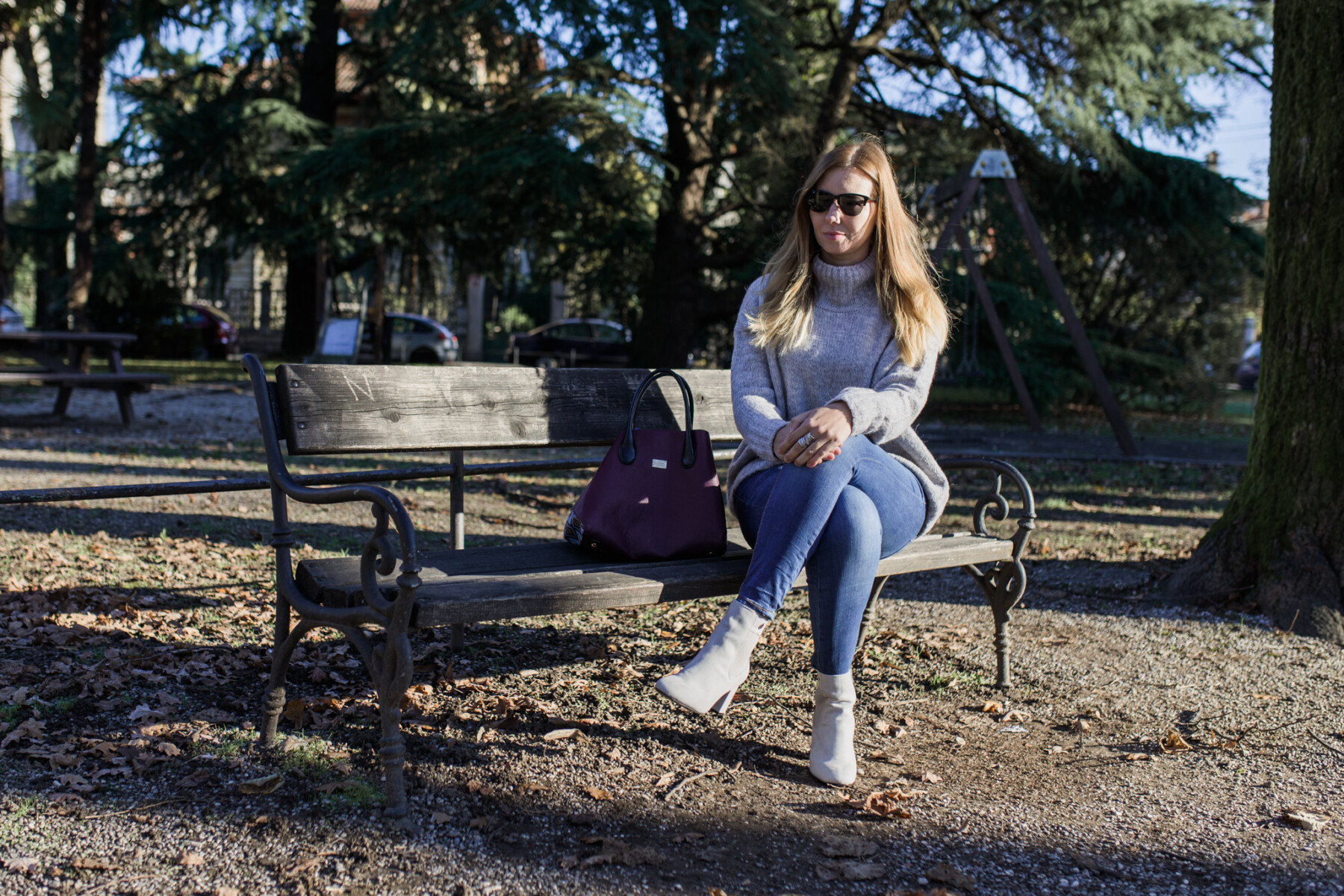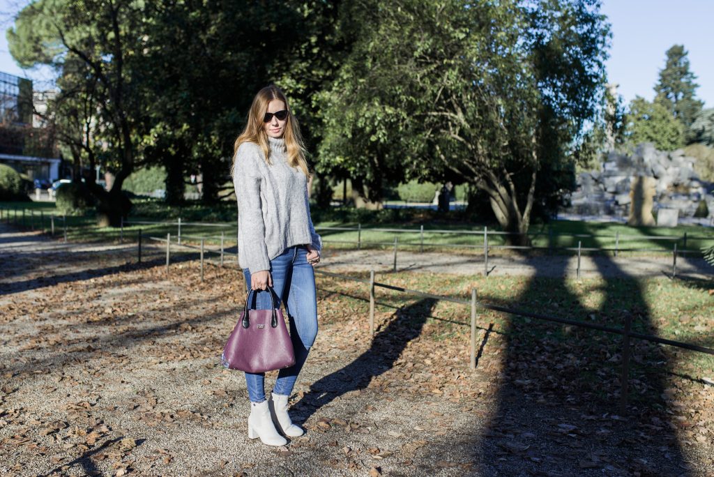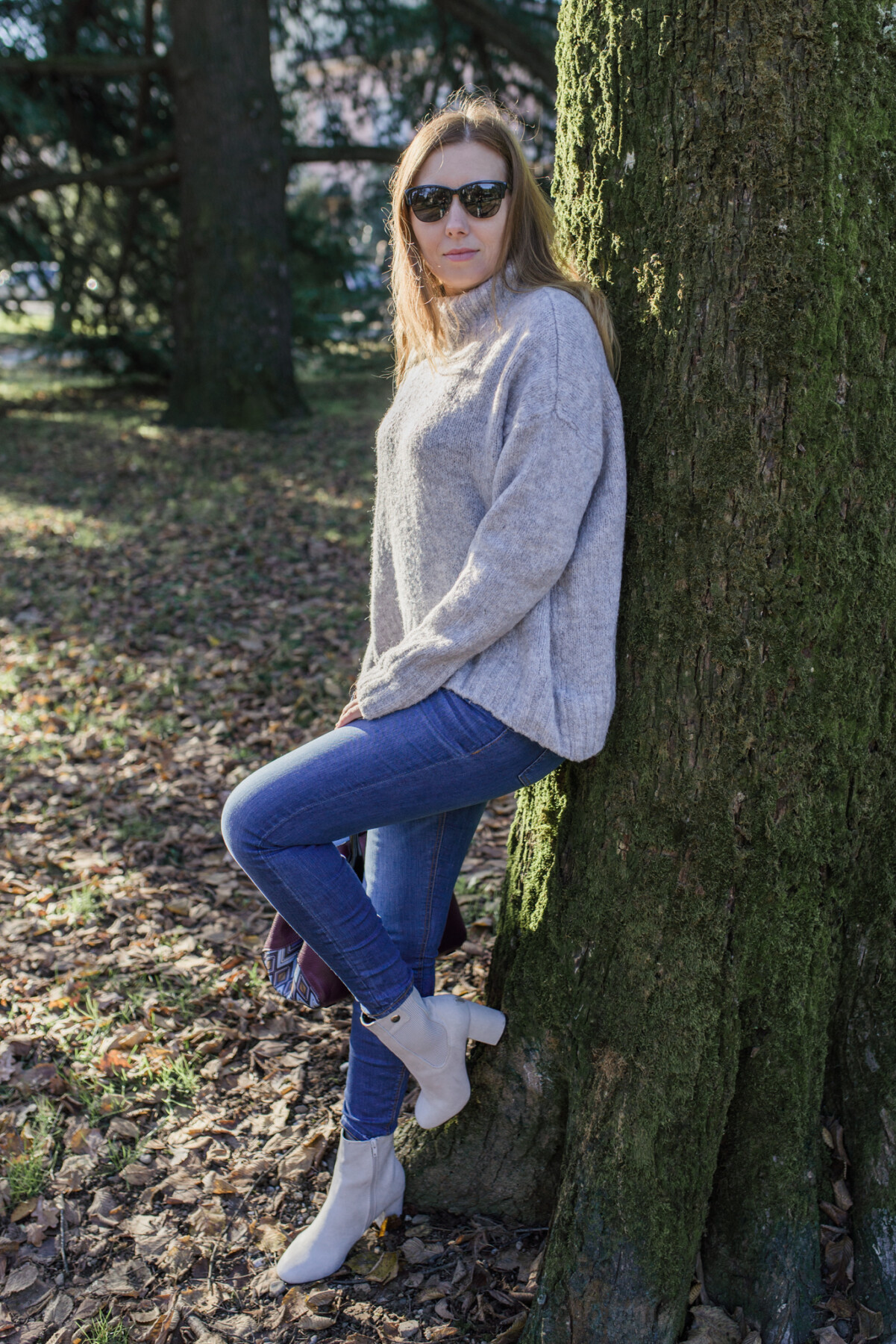Il grigio è il colore di questo inverno ed io, nell’outfit che vi faccio vedere oggi, l’ho indossato. Nell’outfit di oggi ho deciso di abbinare il maglione grigio con i jeans e gli stivaletti grigi. Come accessori invece ho scelto una borsa di marchio Gixel che avevo preso alle Canarie e l’orologio firmato Timex. Un marchio di orologi americano che dal 1854 produce gli orologi senza tempo. Nel 1895 cinque chili di caramelle costavano 35 centesimi, e un dollaro l’orologio da tasca Yankee. Entro la fine del secolo sono stati venduti oltre sei milioni, anche Mark Twain era un loro fan. Nel 1984 hanno creato il primo orologio sportivo al mondo, un traguardo importantissimo. L’orologio che vedete sulle foto è della collezione Fairfieled, una linea pulita con i cinturini intercambiabili.