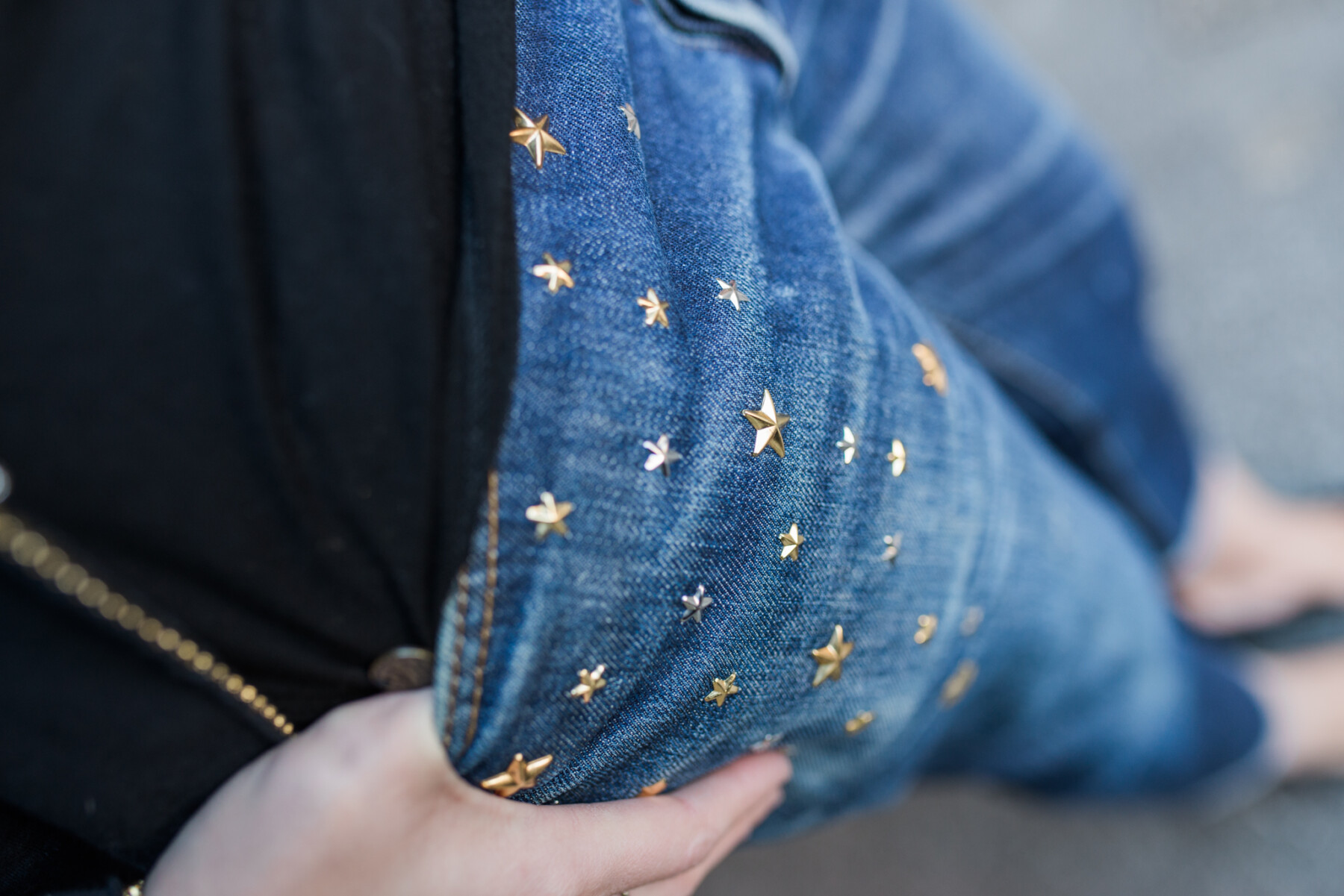 Io ho scelto un paio di jeans con le applicazioni a forma di stelle. Mi sono piaciute subito appena l’ho visto sulla pagina FB di Rossano e gli ho mandato un messaggio. Da lì è partito tutto e in 10 giorni ho avuto i miei jeans a casa.