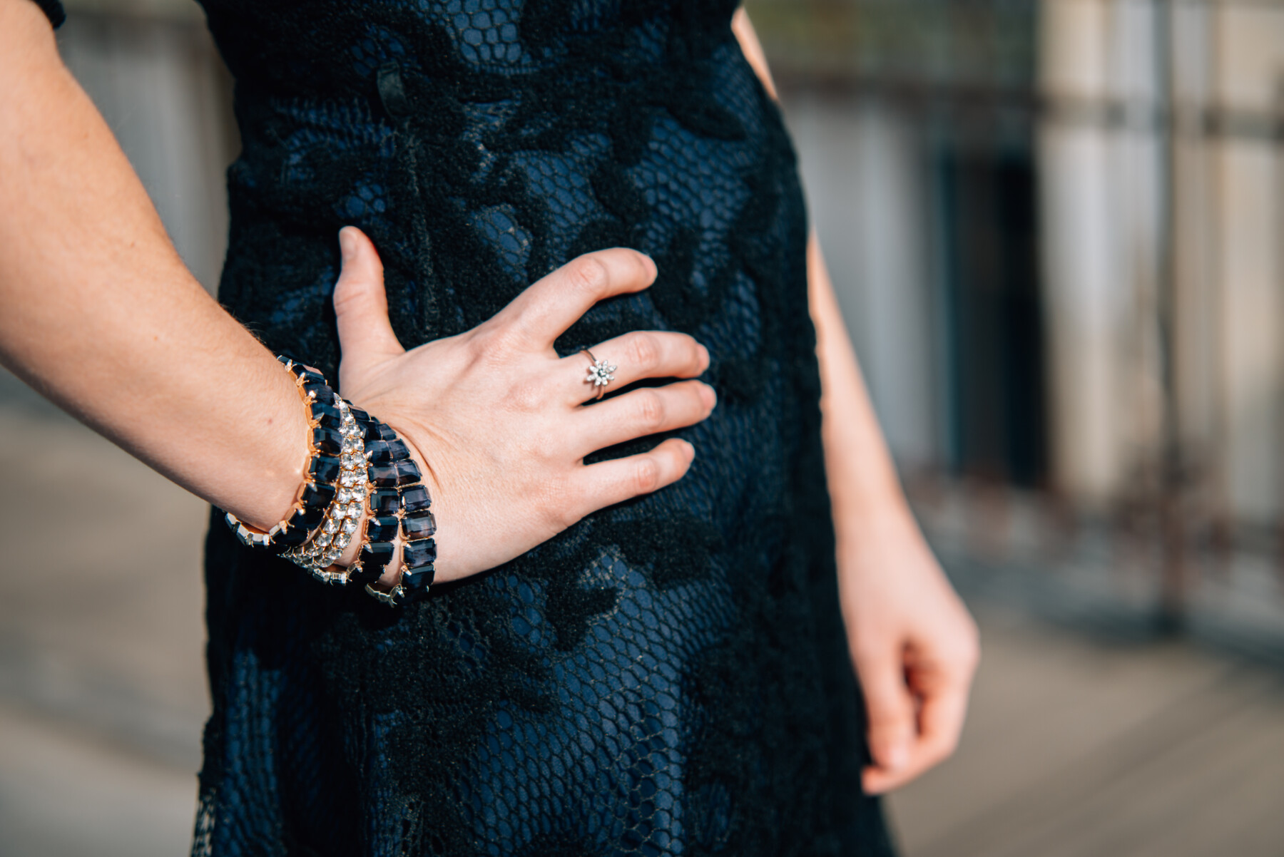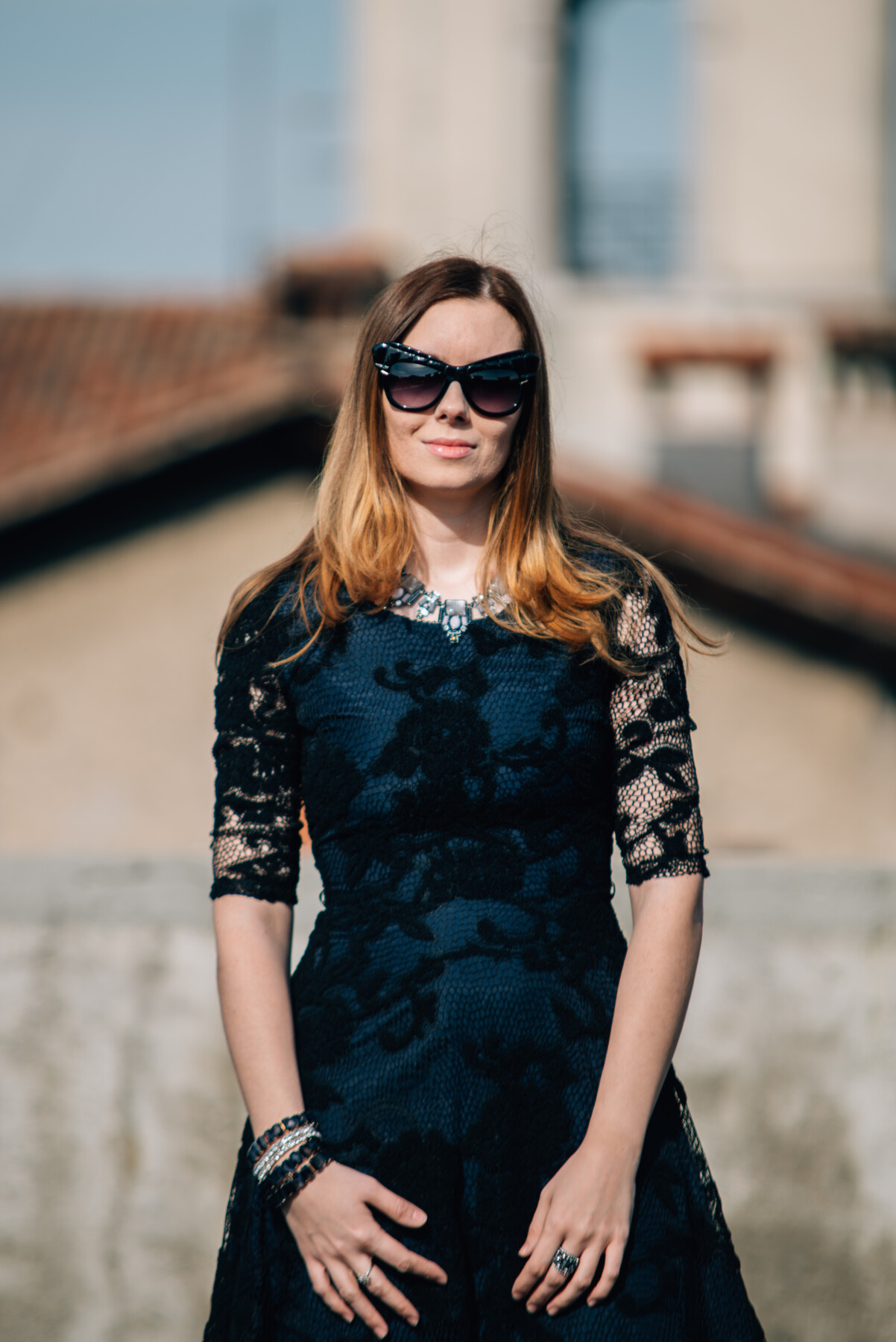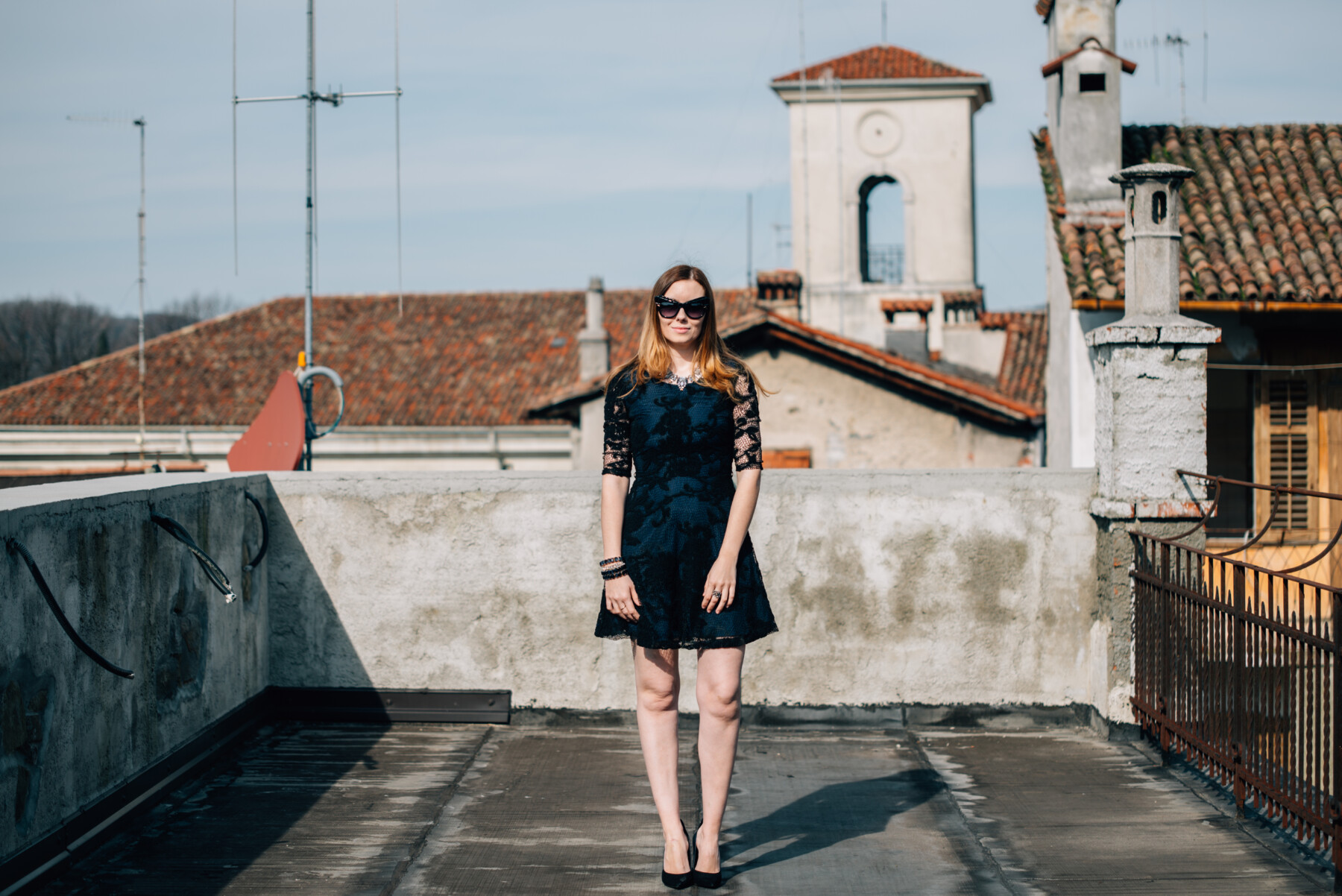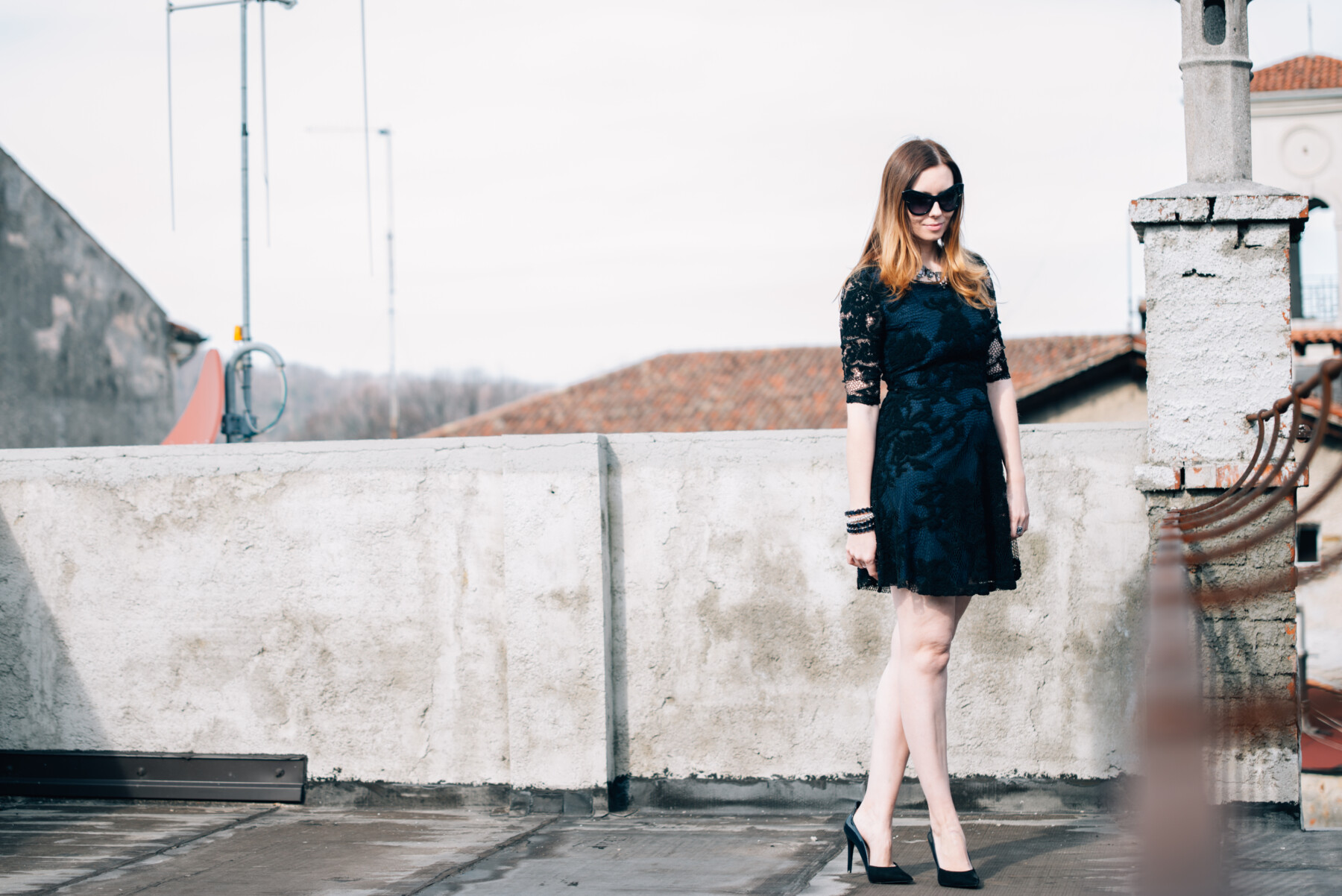 Ho acquistato l’abito che indosso sul sito di ShowroomPrive; di recente vi avevo già parlato di questo e-commerce online, il post ve lo potete leggere QUI. Ho scelto un abito in blu scuro in pizzo con le maniche anche in pizzo. Un abito del marchio London Fashion con un paio di scarpe di Zara, dalle quali non mi separo più.