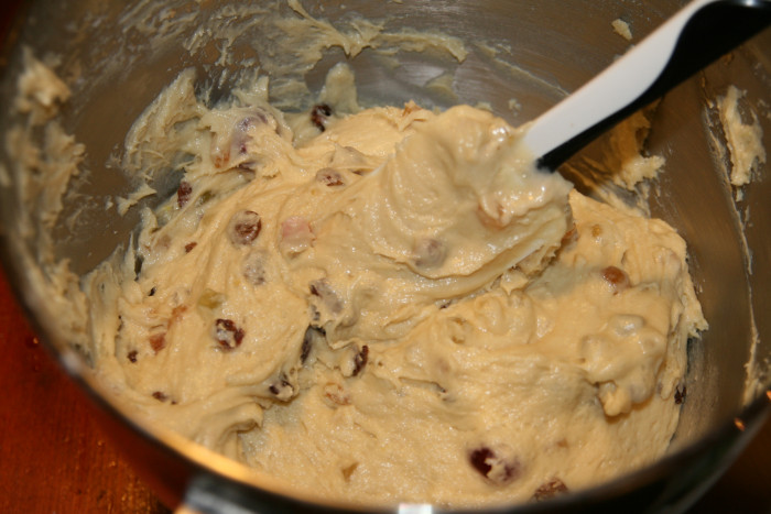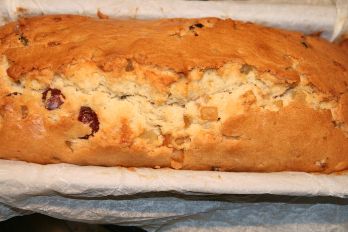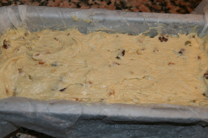 by mixing. After mixing the mixture well, embedding the sifted flour, baking powder, and add the milk as needed, important that mixture does not become too liquid, but must break away from the ladle. Put the sultanas in warm water, then squeeze and with other candied fruit add in the mixture. Mix all together and pour the mixture into a plumcake model (25 cm or 26 cm long), lined with baking paper. Bake in preheated oven at 180 degrees for about 60 min. Remove from the oven and let cool.