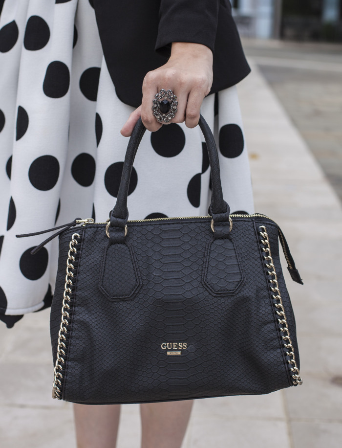 The outfits in black and white are a classic, always go well. When, a month ago, I went out for the first time with the skirt that you see in these photos I thought to pair it with a polka dot shirt, but in reverse, with the black background and white polka dots, but on me was not good, I did not feel at ease, so I chose a simple black T-shirt, as you can see on the photos. But that time, being already the evening, we did not have the time and we could not take pictures, so last week accompanied me my father in law and we took these photos. I was a bit distracted because people continually was passing and I did not want they also there are in the picture, because with the Privacy Act of today you never know, that someone contact me and that ask me the damage 🙂 I leave you with my outift and I wish you a nice day!