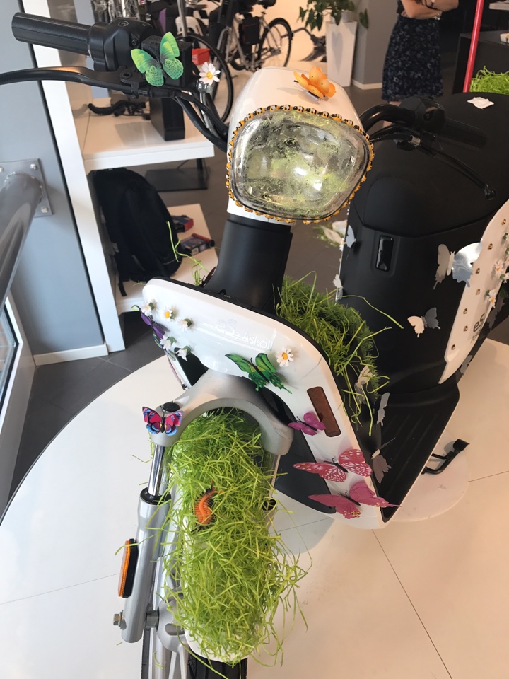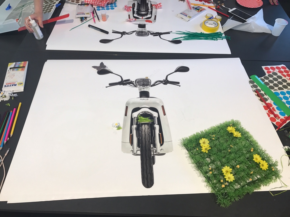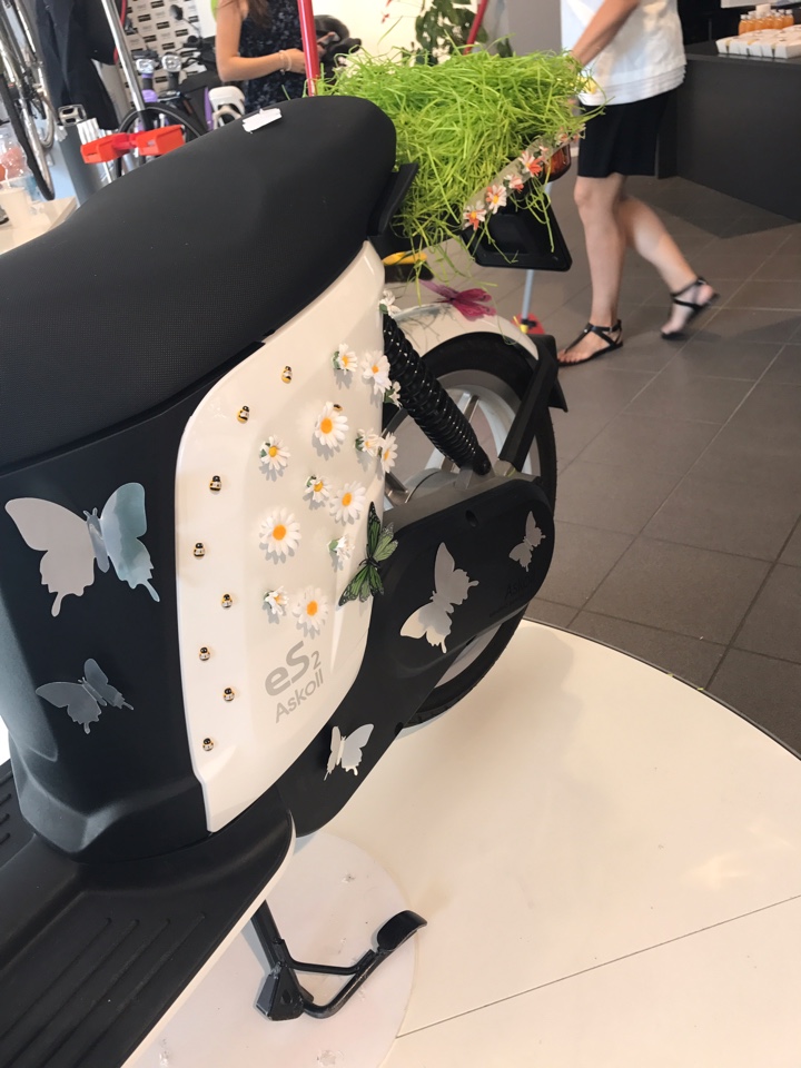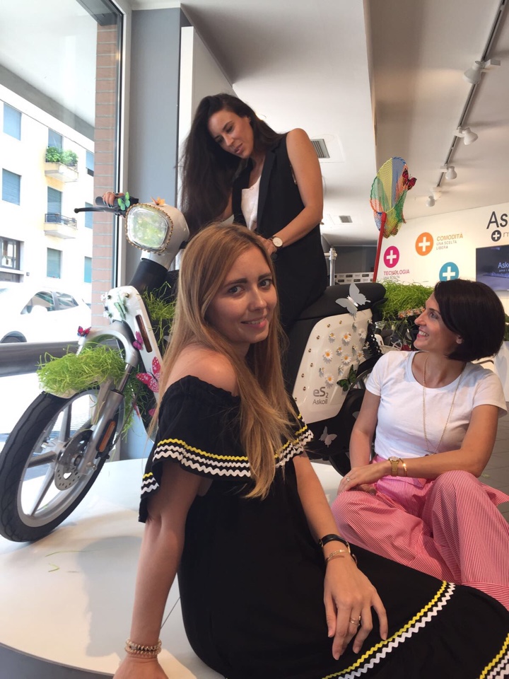 Tornando invece alla giornata con le mie colleghe ed amiche blogger con le quali abbiamo personalizzato tre scooter, ci hanno diviso in tre gruppi, Rebecca ed Alessandra hanno scelto come tema il colore verde, le strisce ed i pois. Marta, Marzia ed Angela hanno scelto per il loro scooter il tema pic nic. Invece il mio team, nel quale eravamo Maggie, Meggy ed io abbiamo scelto come tema il green. Il nostro concetto del green era che assolutamente lo scooter debba essere personalizzato con i fiori, farfalle, erba, glitter ed api. E’ stato molto divertente, tutte siamo tornate un pò bambine e alla fine siamo riuscite a realizzare degli scooter unici. Con Maggie e Meggy nel team è stato facile realizzare il nostro scooter, visto che avevamo lo stesso concetto del green. Alla fine gli scooter di Askoll sono diventati anche molto fashion, e chi di voi non vorrebbe andare in giro con uno di questi scooter?
