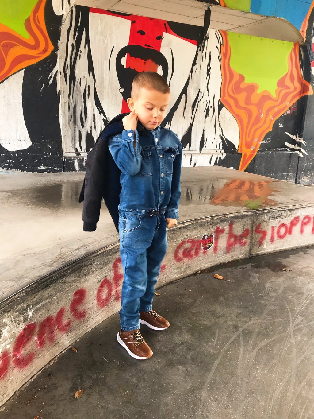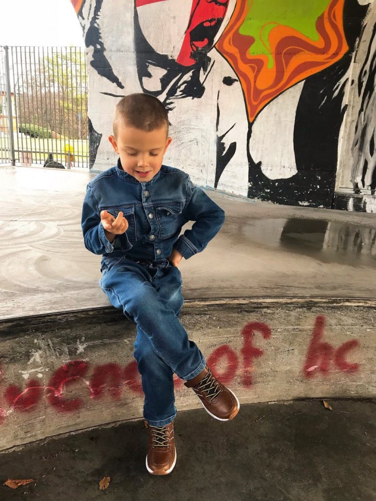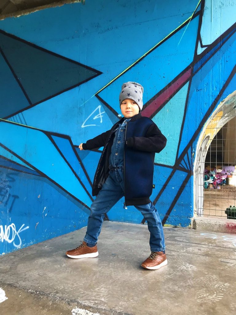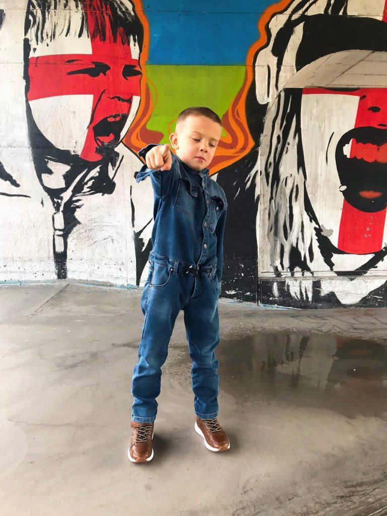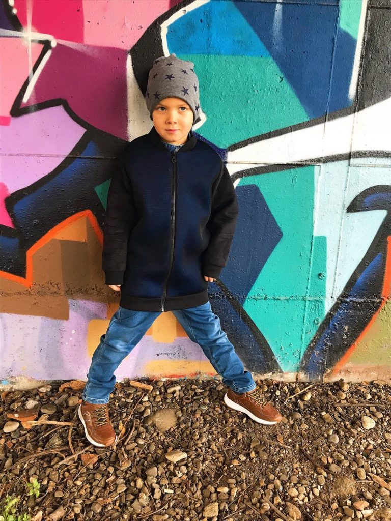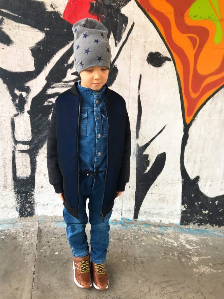 Per questa giornata per te tanto importante e tanto attesa ho scelto total look di Goganga. Un brand che è nato l’anno scorso e che ha fatto già di strada. Un brand che è un brand svizzero con la lavorazione completamente Made in Italy, per i bambini e ragazzi dai 4 ai 16 anni. Un brand che crea e realizza i capi divertenti e che si possono portare ogni giorno. Hanno anche una linea in denim ed oggi potete vedere Mario che indossa la sua tuta in denim. L’ho abbinata con il bomber molto particolare che ha le maniche scamosciate e davanti e dietro è in blu metallizzato in materiale neoprene con la rete. Invece all’ interno è nero e dovete sapere che Goganga è molto attenta ai dettagli come anche all’ interno dei loro capi. Fattemi sapere che ne pensate di questo look di Mario.