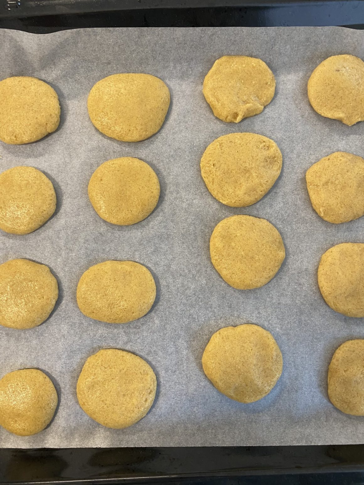 Preriscaldate il forno a 180 gradi e foderate una teglia con la carta forno. Lavorate il burro morbido con lo zucchero. Aggiungete i semi di vaniglia (raschiati dal mezzo baccello), le uova, la farina setacciata con il bicarbonato e il sale. Lavorate finché tutti gli ingredienti saranno ben amalgamati.