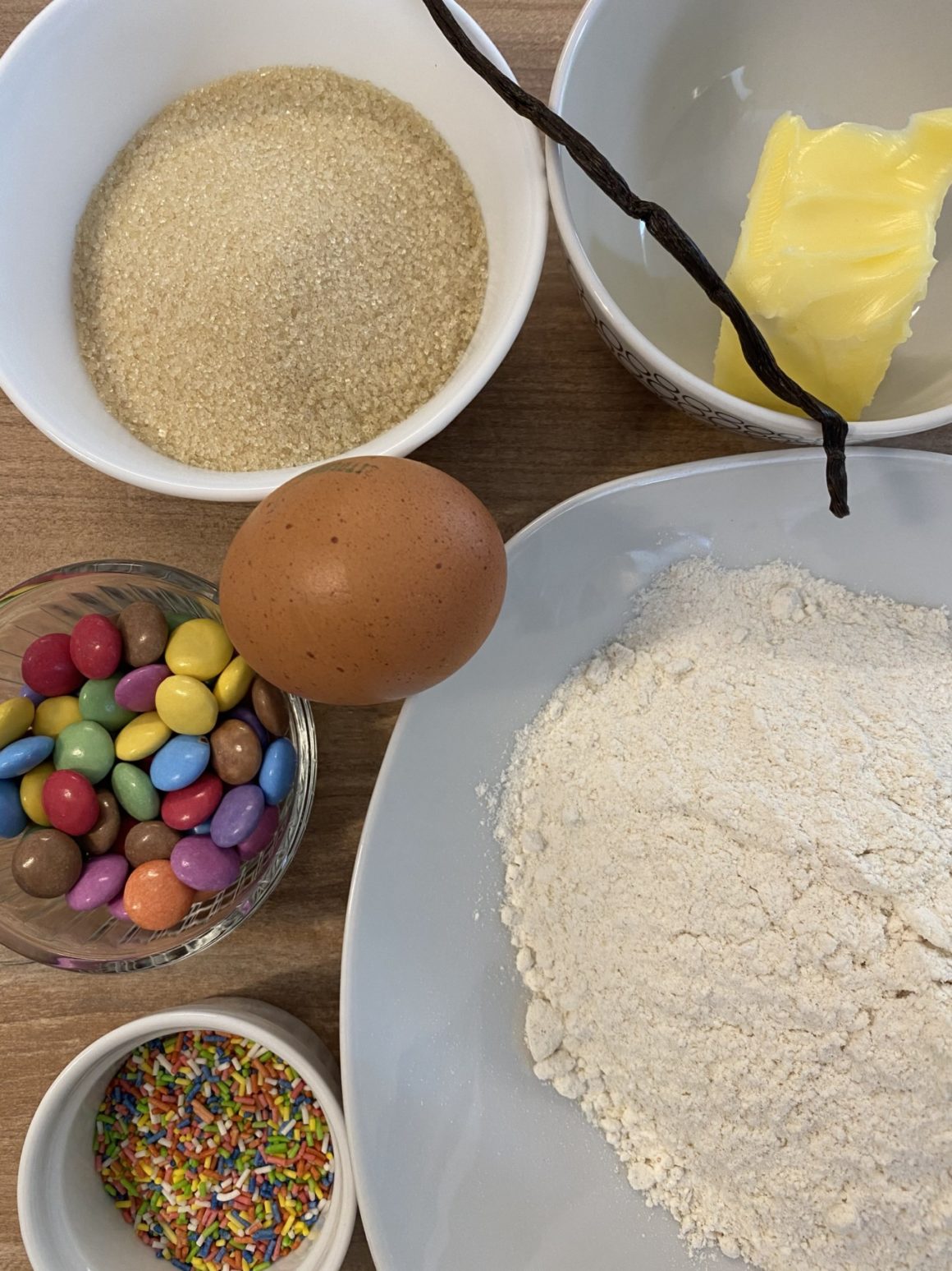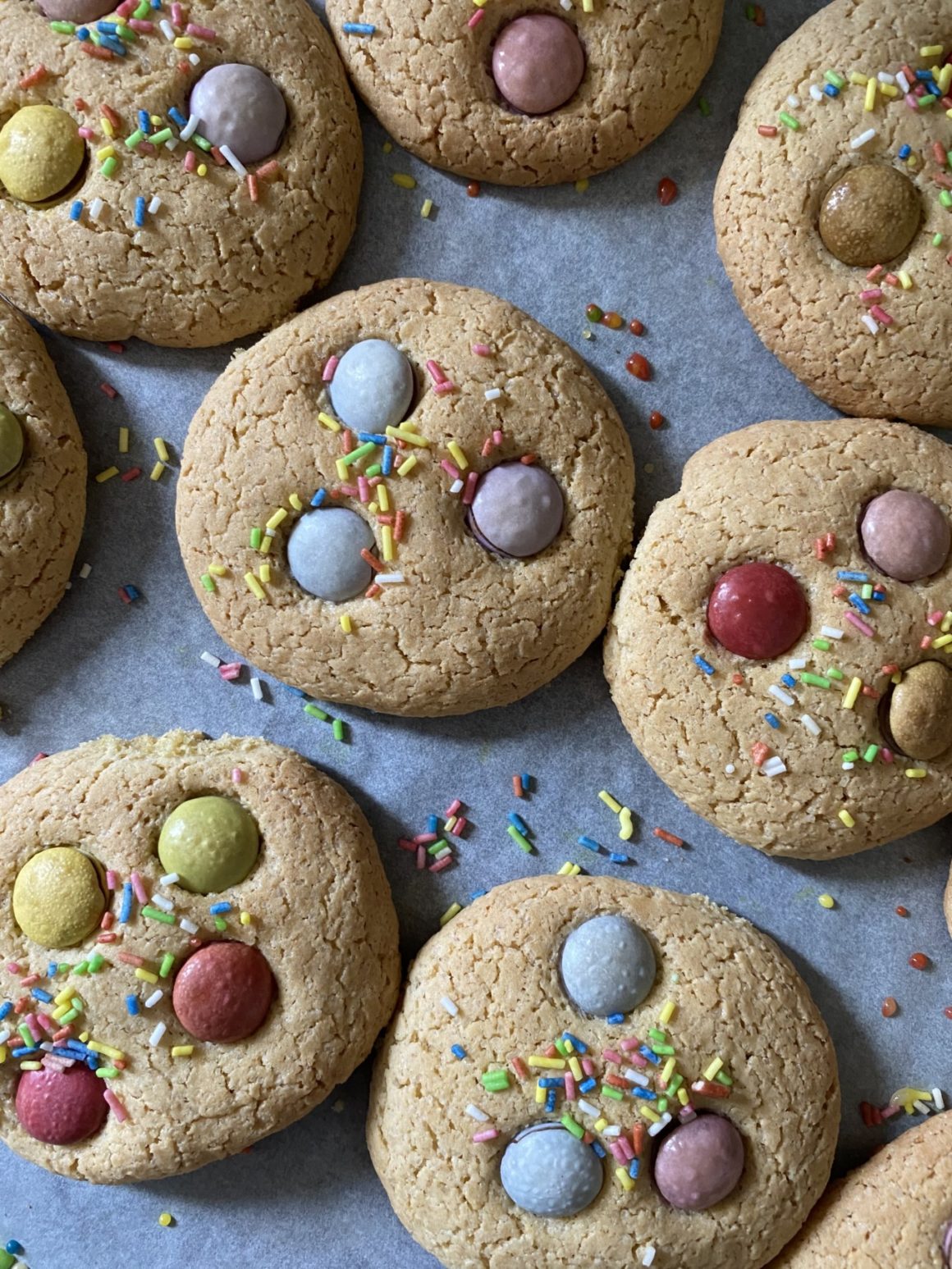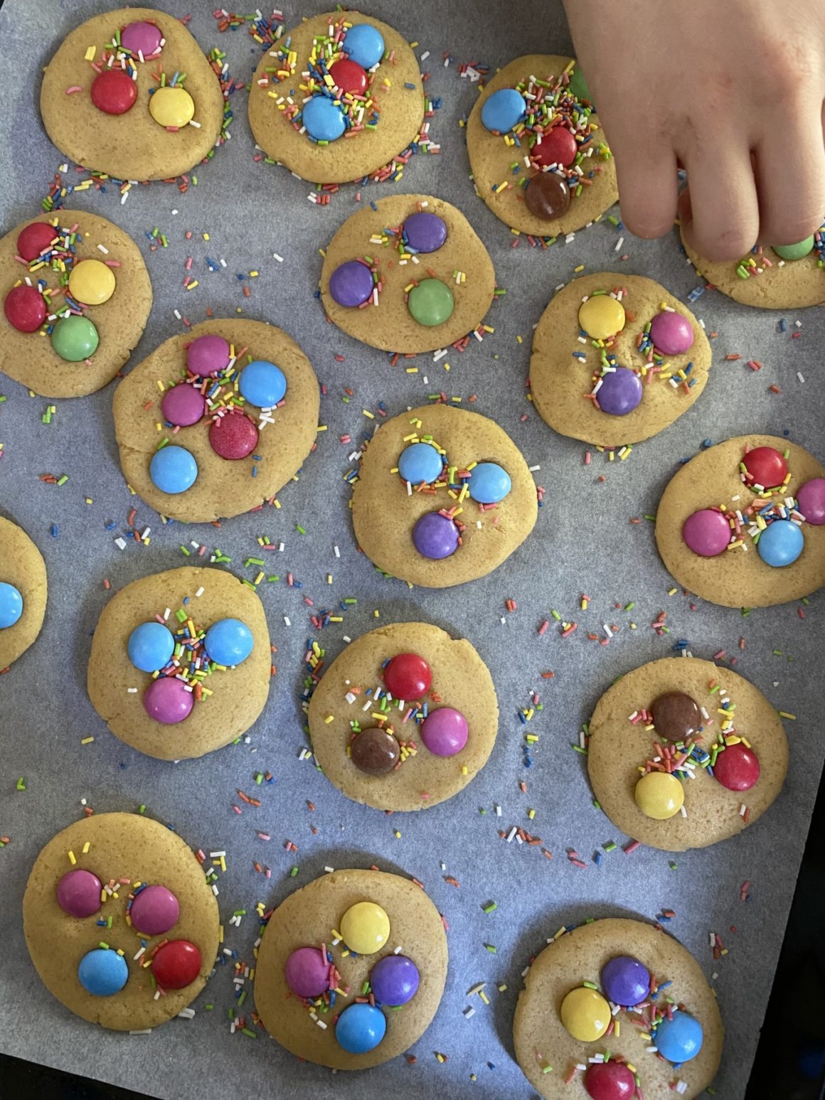 Dividete l’impasto in piccole palline, schiacciatele e mettetele sulla carta forno, lasciate un po’ di spazio tra l’uno e l’altro, decorate poi con gli smarties e le codette. Infornate e cuocete per 10 minuti. Lasciate raffreddare prima di servire…anche se i bambini sono impazienti!
