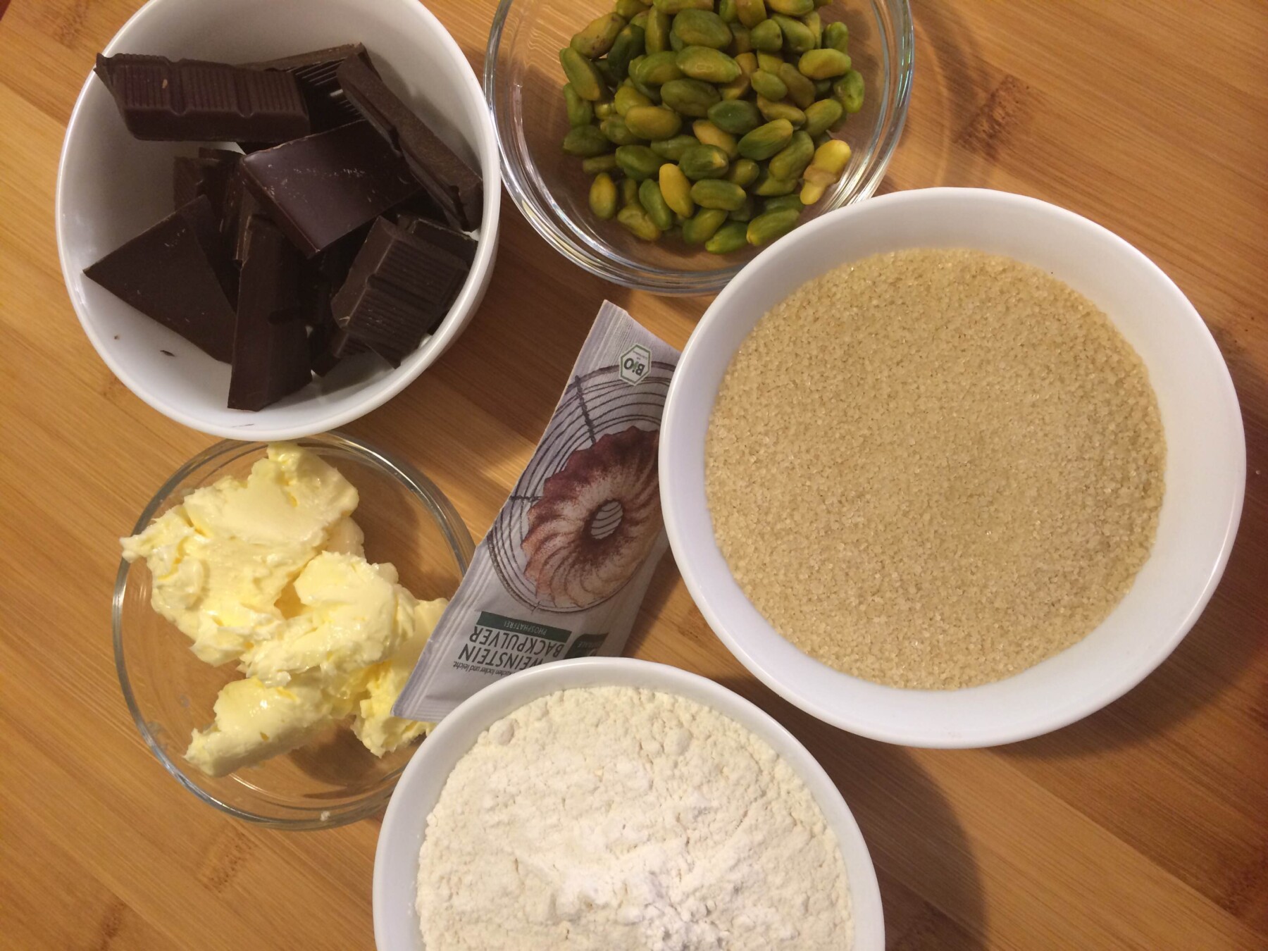 Biscotti di cioccolato e pistacchi – Ingredienti per 25 pezzi: