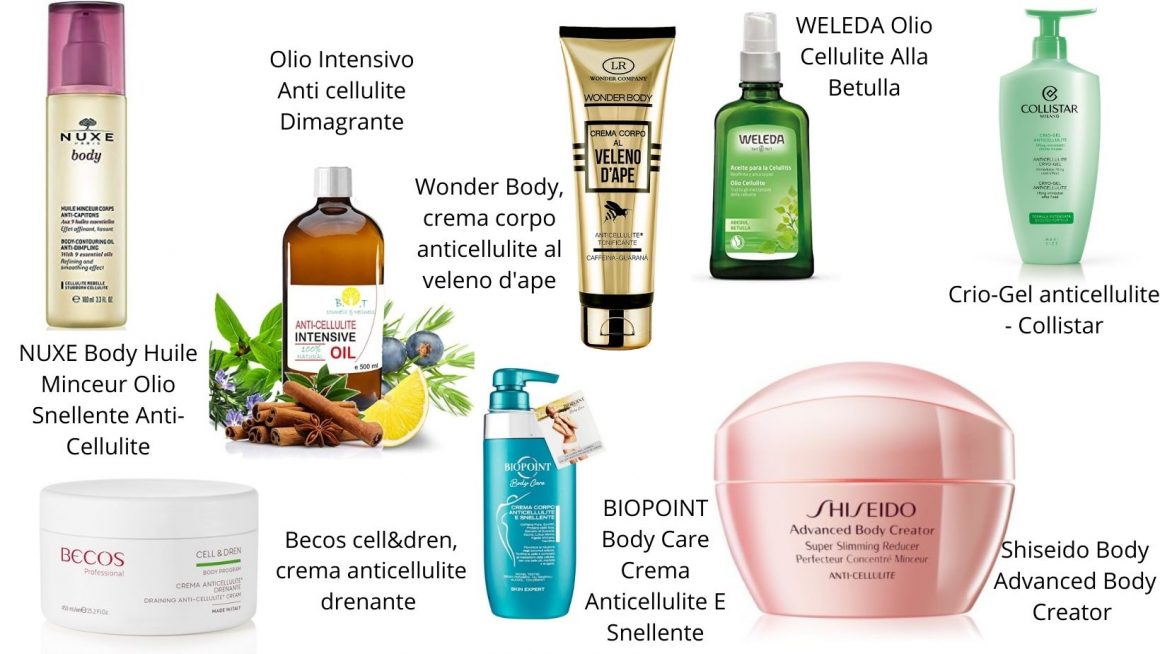 Sfortunatamente, non esiste una crema magica che cancellerà tutta la cellulite così facilmente. Tuttavia, conosciamo molti ingredienti efficaci che migliorano l’aspetto delle parti interessate. Gli ingredienti cosmetici per alleviare la comparsa della cellulite si differenziano nei seguenti punti: aumentare la circolazione sanguigna o microcircolo, ridurre la lipogenesi e aumentare la lipolisi, ripristinare la normale struttura del derma e del sottocute (retinoidi) e sostanze che prevengono la formazione di radicali (antiossidanti).