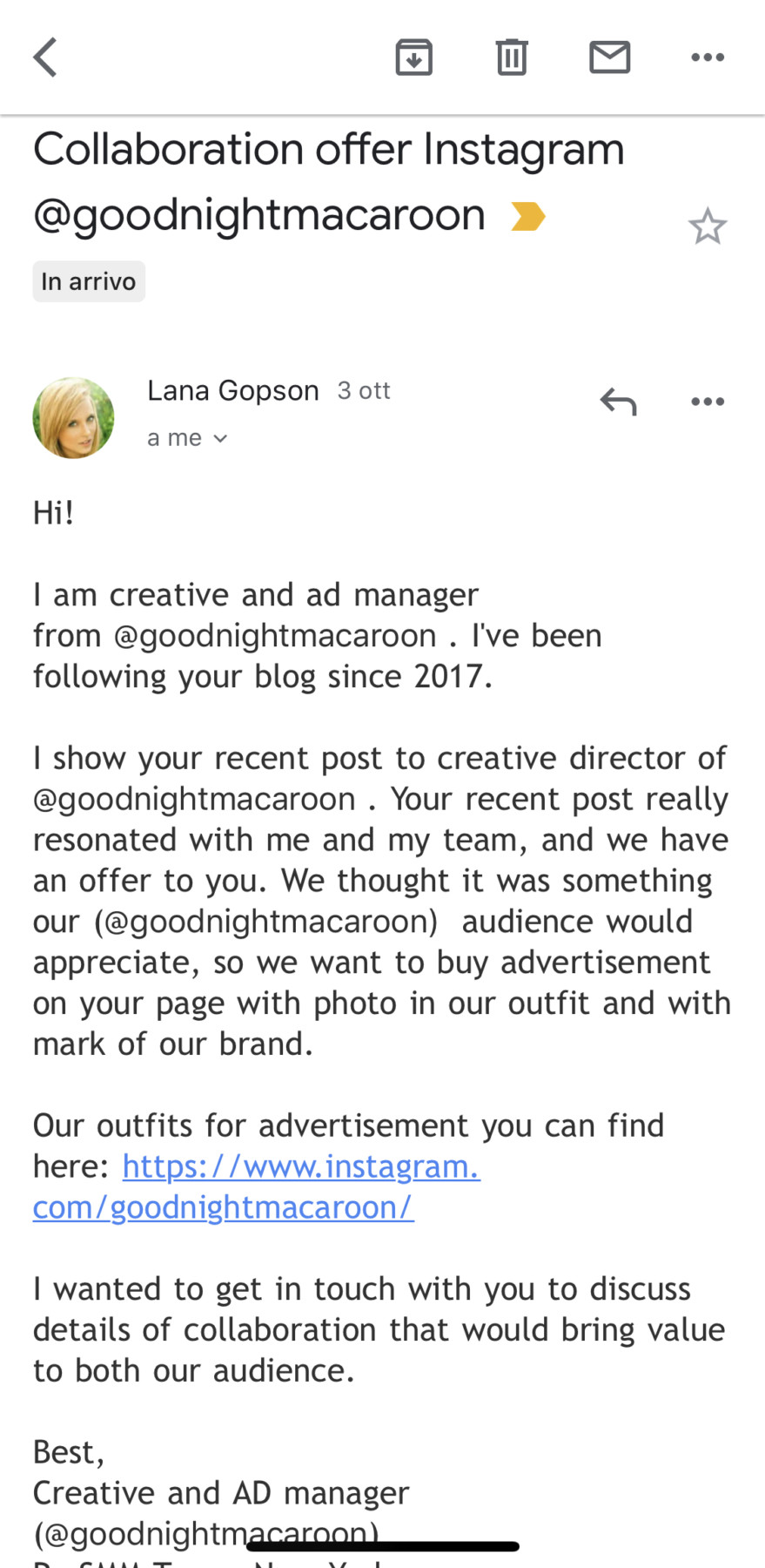 1. Non aprite nessuna mail dal cellulare, che si tratti di una collaborazione, di un evento, di un press day o qualsiasi altro, MAI aprire! Le mail degli hacker vi possono arrivare anche come un invito ad un evento, oppure se siete un’azienda e state leggendo questo articolo, potreste al contrario ricevere una finta mail di richiesta di collaborazione da parte di una finta blogger. Infatti, non solo le blogger/influencer vengono messe nella rete degli hacker, ma anche le aziende/brand!