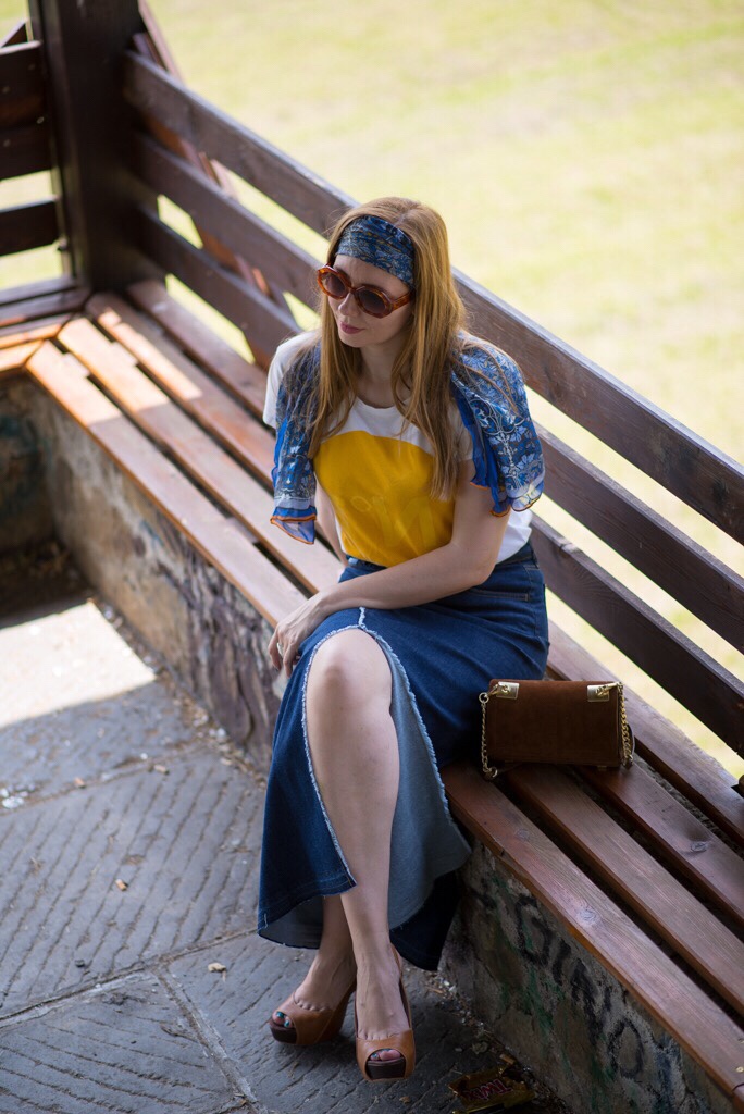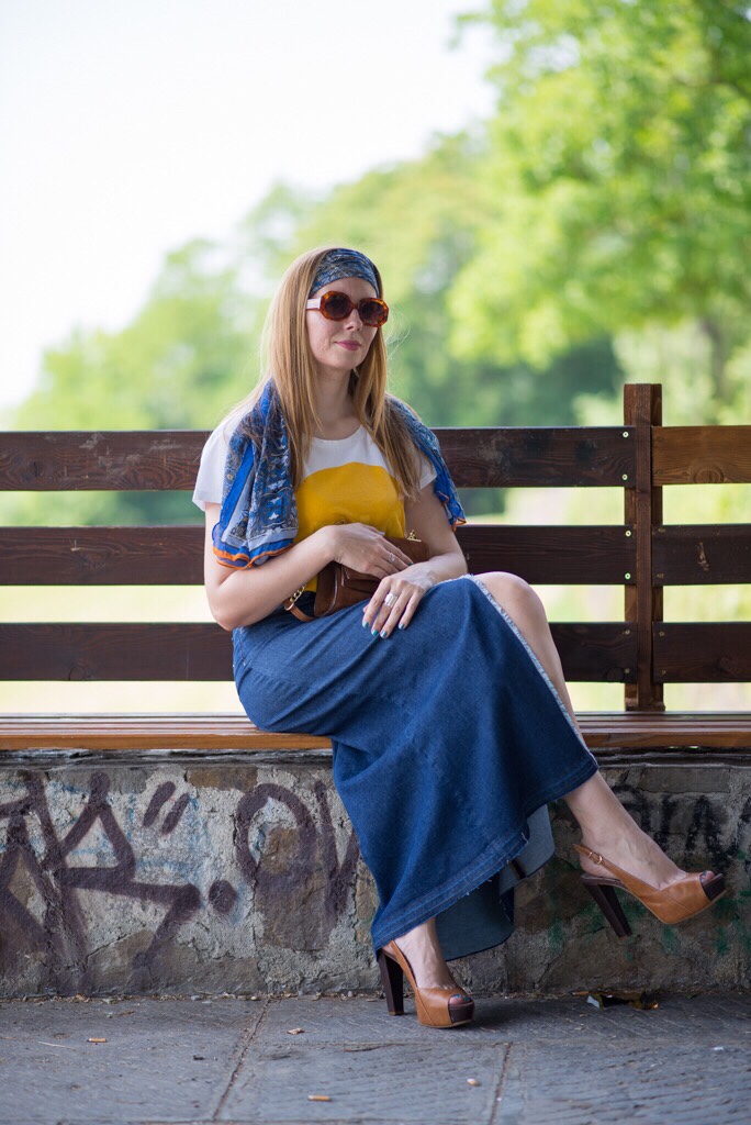 Il foulard di Le4uadre ho voluto portarlo in una maniera più diversa del solito, non al collo ma come fascia per i capelli. Così ho completato il mio look ispirato agli anni ‘70. Che dite ci sono riuscita?