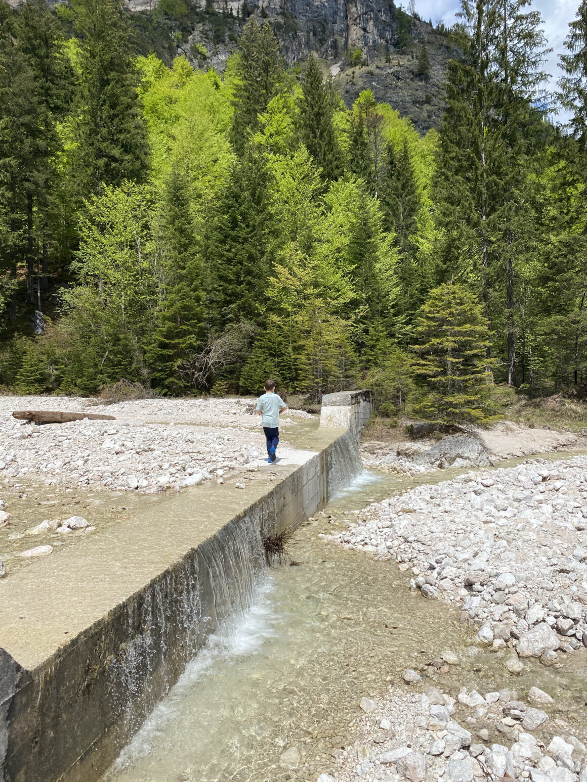 Per raggiungere la riserva da Auronzo bisogna seguire la statale regionale SR48 in direzione Misurina e arrivare fino a Palus San Marco. Appena passata la stazione del Corpo Forestale dell Stato, sulla sinistra troverai il cartello che ti indica la strada che entra al parcheggio della Foresta. Da qui inizia il percorso a piedi. Lasciando il parcheggio alle spalle entrate nella foresta seguendo le indicazioni arrivi al primo punto di ritrovo dove c’è il Museo del Bosco, la Biblioteca del Bosco e l’area riservata alla tutela delle Farfalle. Durante la nostra permanenza era tutto chiuso perché stavano facendo i lavori sulla strada sterrata a causa dei tanti alberi caduti durante l’inverno. Ci sarebbe piaciuto visitare questa area, ma tanto ci torneremo di sicuro! Da lì abbiamo proseguito per incirca 40 minuti fino ad arrivare ad un torrente. Mario si è divertito tantissimo, perché oltrepassava il torrente e lanciava i sassi. Qui si può ammirare una vista magnifica sulle Dolomiti ed è un posto perfetto dove poter fare un picnic.