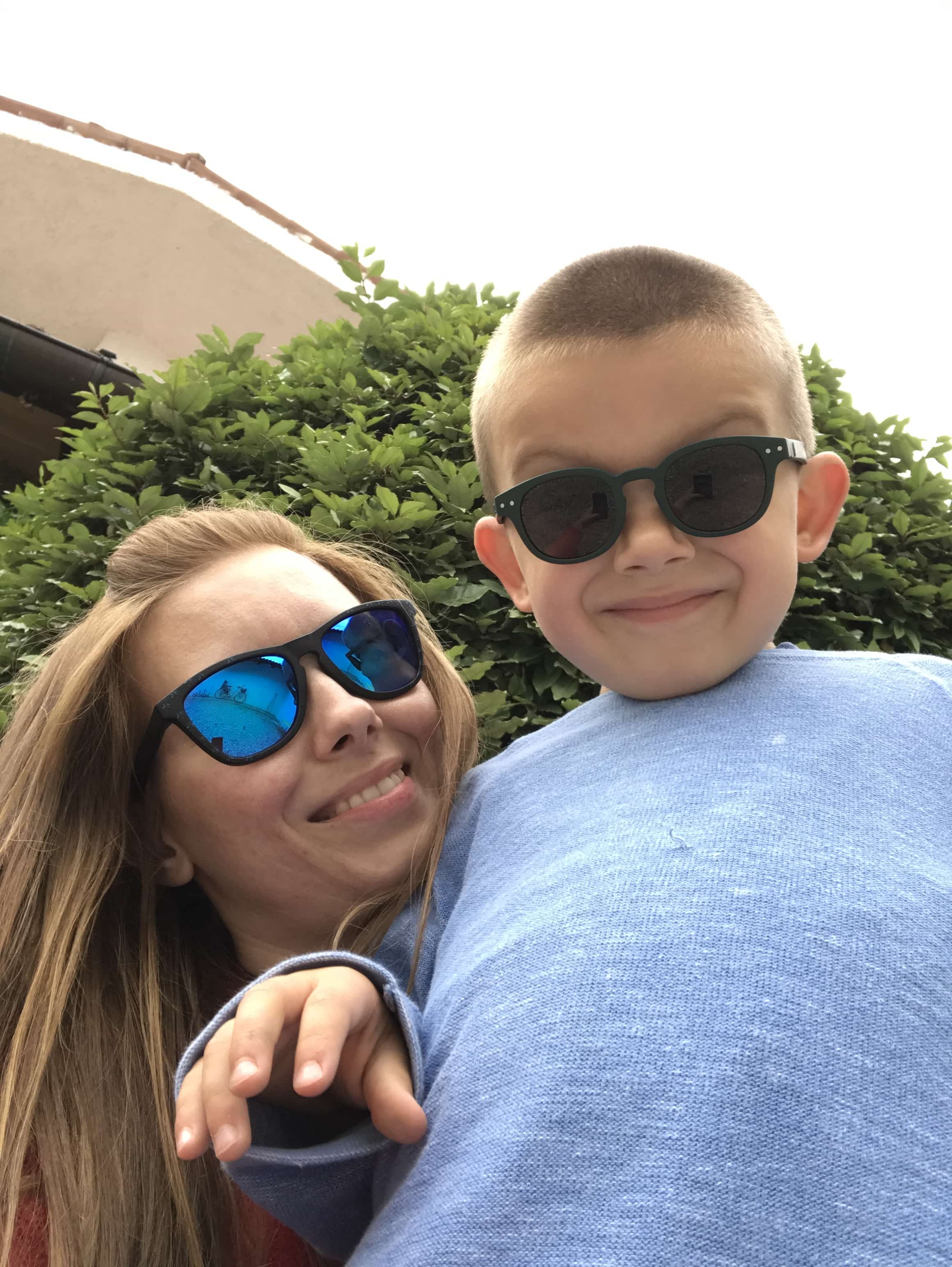 Sono una spietata compratrice di occhiali da sole e ne possiedo tanti. Questa stessa passione l’ho trasmessa a mio figlio Mario, che non esce da casa senza gli occhiali da sole. In estate tutti i bambini dovrebbero portare gli occhiali perché bisogna proteggere i loro occhi dai dannosi raggi solari. Gli occhi dei bambini vanno protetti perché sono in fase di sviluppo e si consiglia che bambini dai 18 mesi in su portino gli occhiali da sole.
