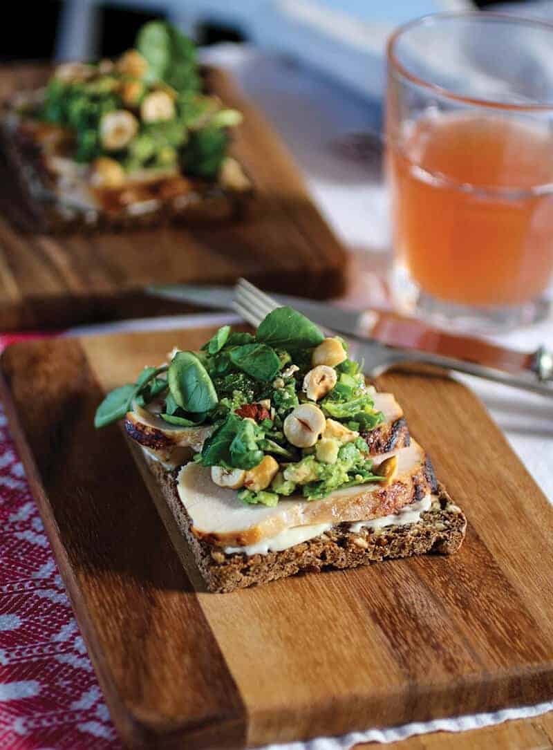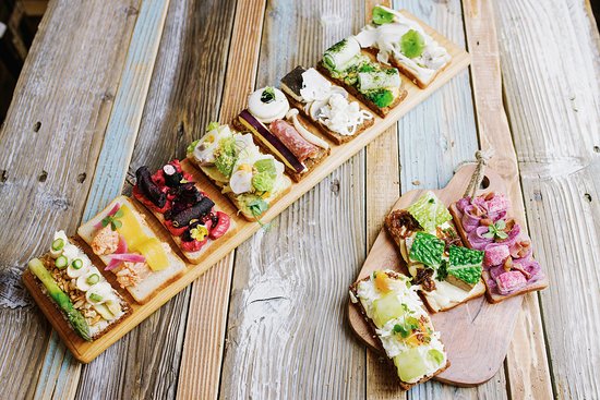 Un tradizionale sandwich aperto scandinavo (una fetta di pane) ha le sue radici in Danimarca. Smørrebrød (burro e pane) è composto da una fetta di pane di segale ricoperta di burro e sopra salame, carne, pesce, formaggio, funghi, verdure, spezie, ..