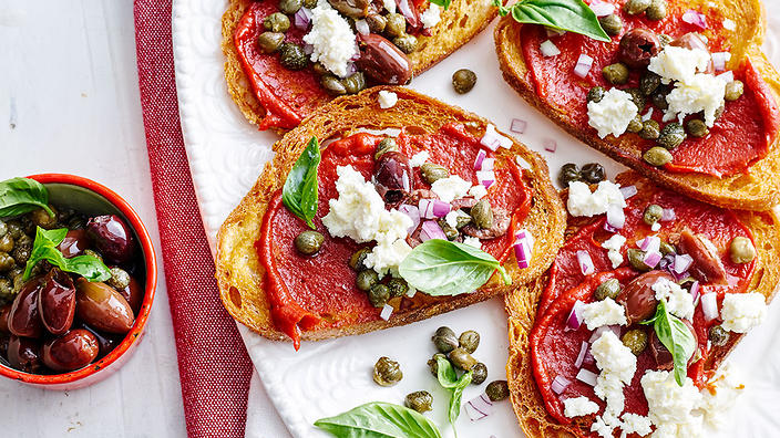 Ħobż biż-żejt è il pane tradizionale maltese aperto, ha solo una fetta di pane ricoperta di crema di pomodoro e olio d’oliva. Sopra si mettono le acciughe marinate nell’aceto di vino, il formaggio di pecora, i pomodori, le verdure sott’olio, le cipolle, le olive, ..