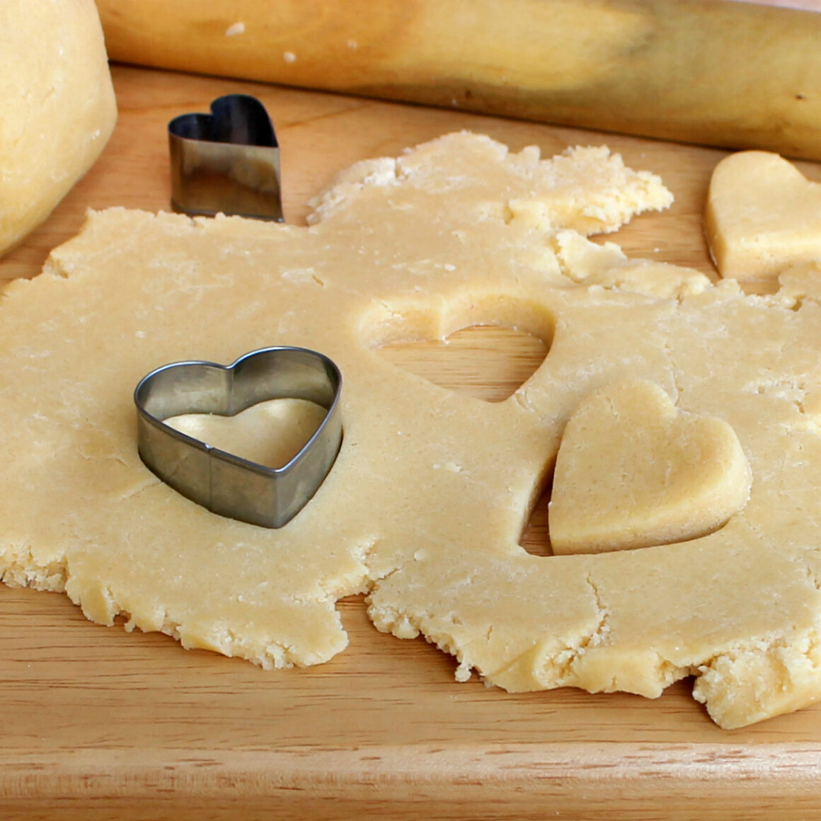 Se non si aggiunge abbastanza liquido all’impasto, questo si sbriciola durante l’impastatura, la stesura o la formatura dei biscotti. Il modo più veloce è fare un buco al centro dell’impasto, aggiungere un po’ di latte, mescolarlo all’impasto e poi formare una palla e stenderla.