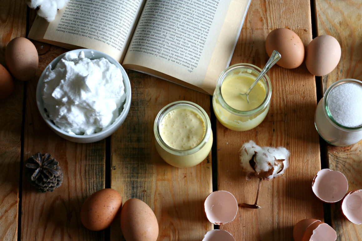 Le uova arricchiscono il gusto e legano gli ingredienti. Devono essere a temperatura ambiente, poiché il tuorlo freddo non si scioglie nell’impasto e gli albumi sono più difficili da montare per ottenere la neve.