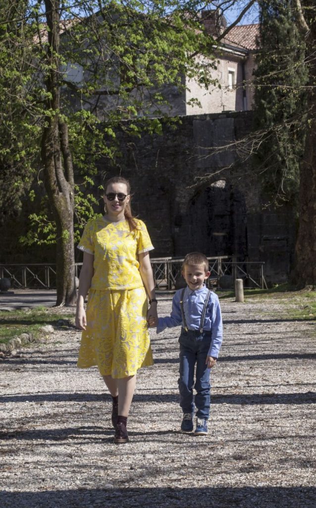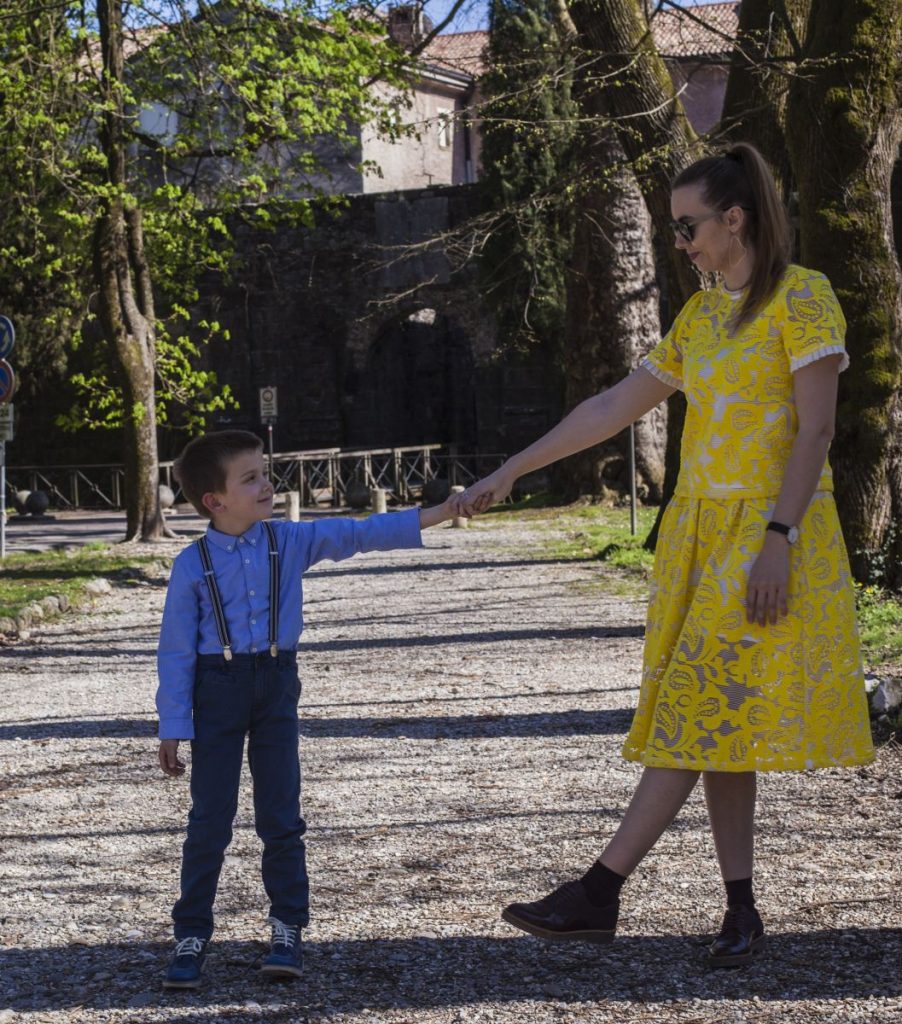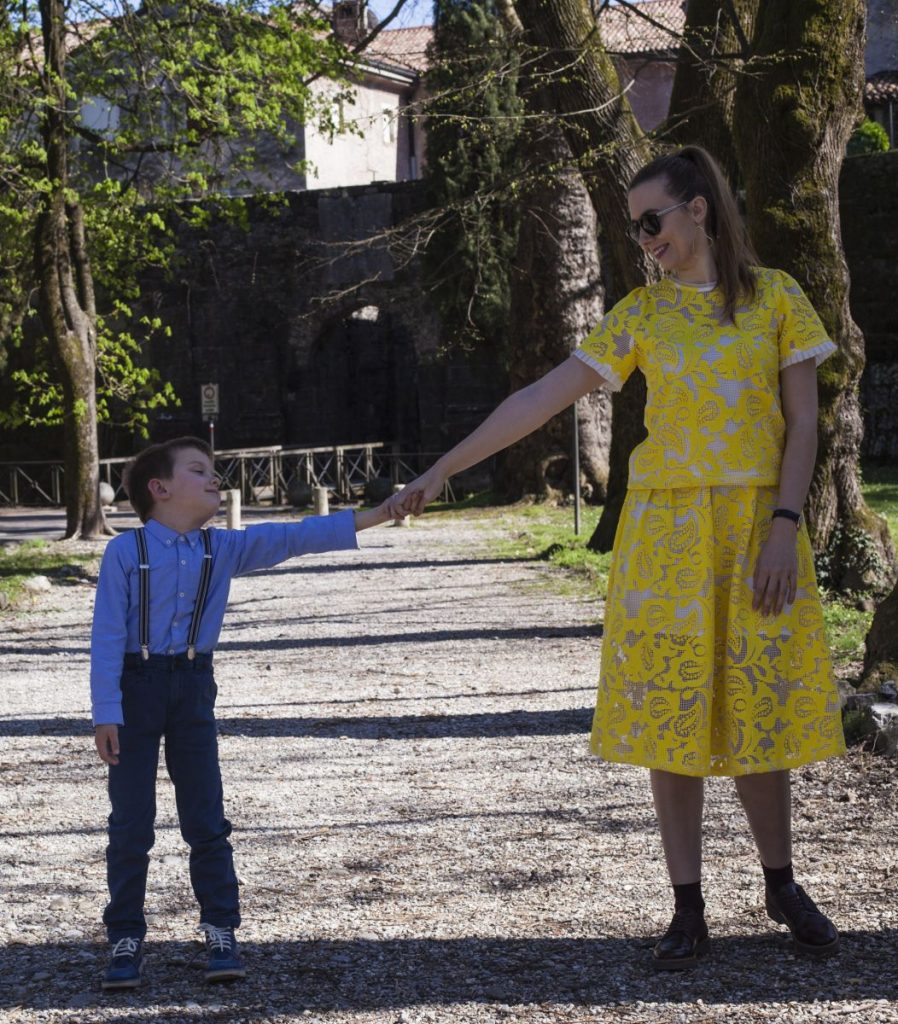 In questo periodo dell’anno come tutti ben sapete, si inizia anche con le cerimonie. Dai battesimi, alle cresime, ai matrimoni, bisogna essere pronti per arrivare ben preparati ai festeggiamenti. Tra l’altro a maggio sono in arrivo anche per me un battesimo (dove sarò la madrina) ed una cresima! Una delle prime cose alle quali bisogna pensare è chiaramente l’abbigliamento e così ho pensato bene di farvi vedere un look per le mamme ed uno per i figli. Questa volta ho pensato per la mamma ad un look diverso, molto primaverile, ed ho scelto un completo in colore giallo acceso e l’ho completato con le francesine stringate Oxfork di Kickers. Le scarpe sono in pelle di color bordeaux con la suola in TR (materiale termoplastico, riciclabile, tanto leggero quanto resistente).