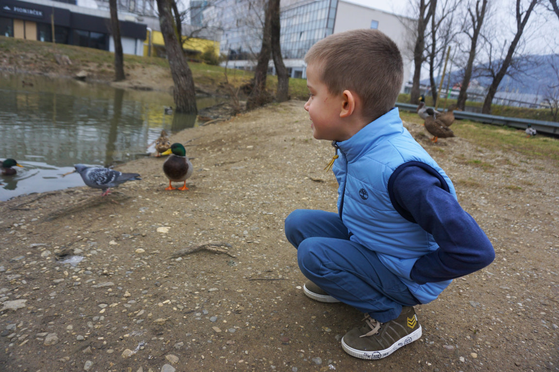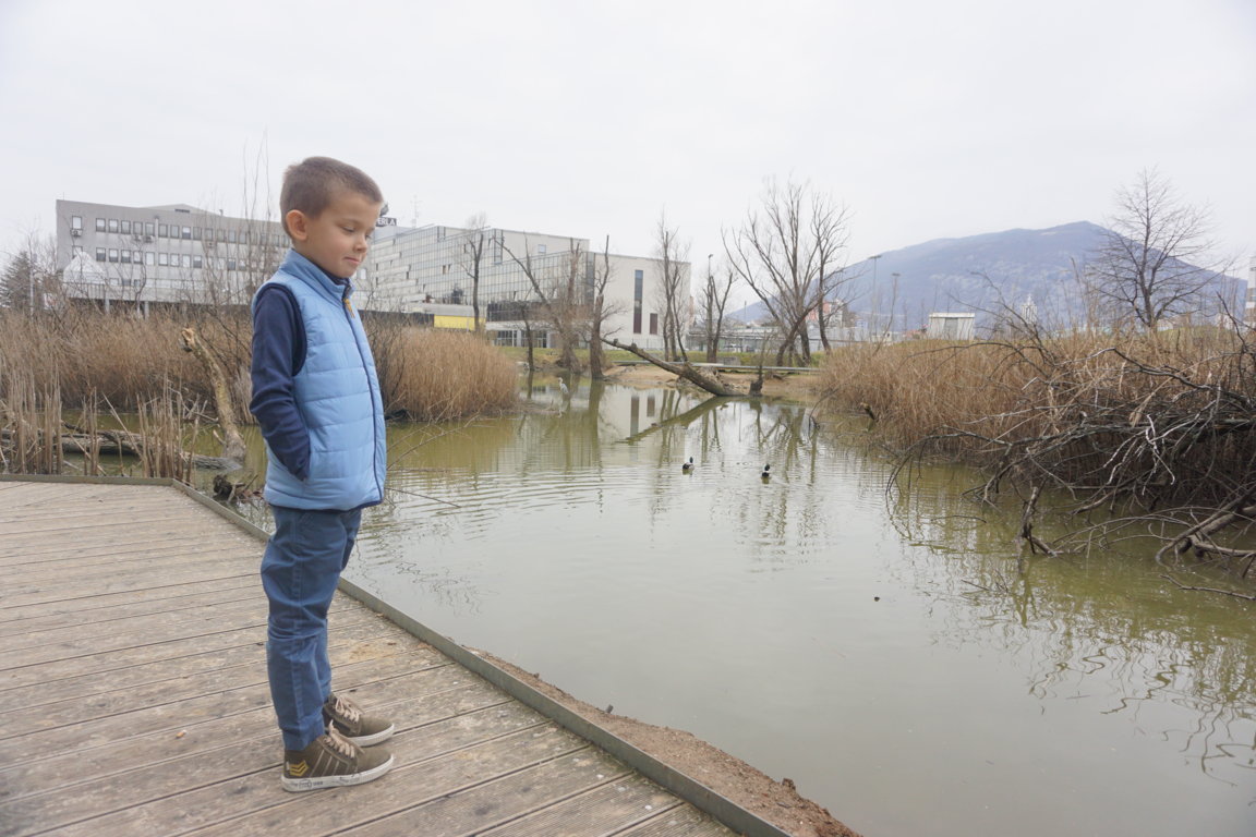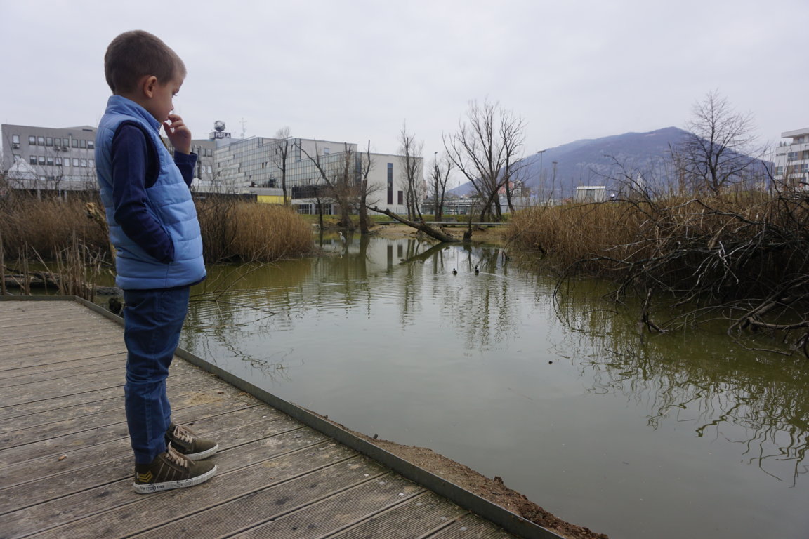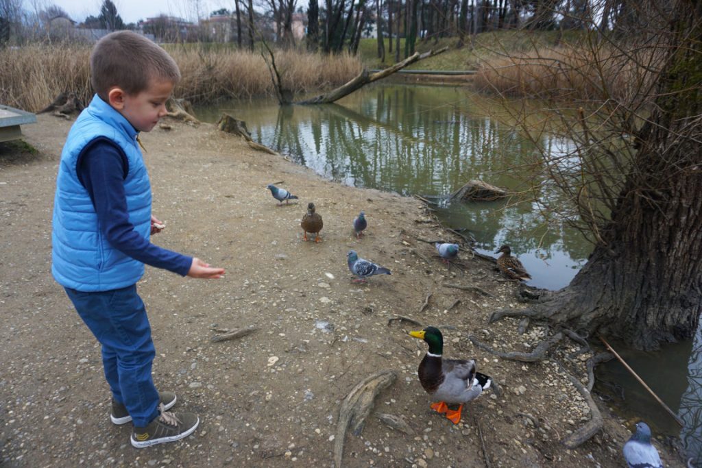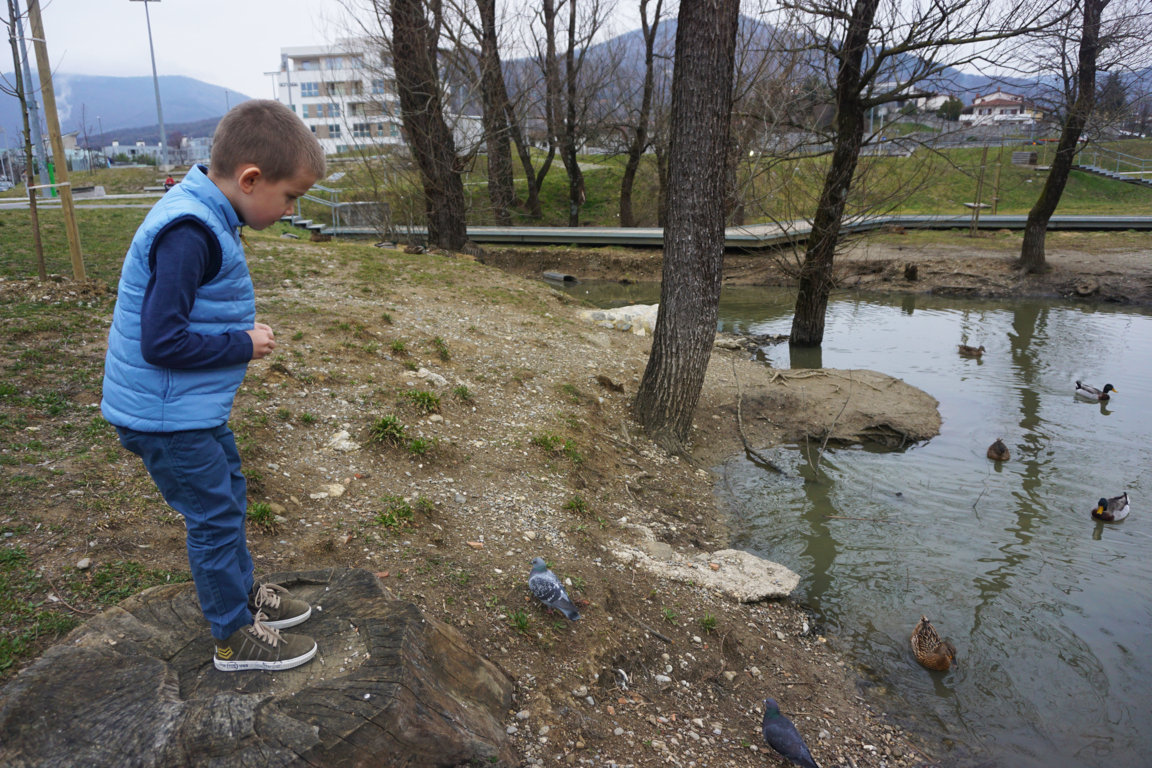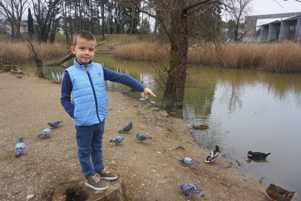 Sabato pomeriggio, anche se le nubi grigie preannunciavano il maltempo che poi è arrivato, abbiamo deciso di uscire comunque a fare una passeggiata. In Slovenia c’è un lago artificiale dove le anatre hanno trovato la loro dimora; spesso con Mario andiamo in questo posto a portare il pane alle anatre. Così anche sabato pomeriggio abbiamo deciso di portare un po’ di cibo alle amichette di Mario 🙂 Oltre alle anatre ci sono anche i piccioni dei quali Mario ha una paura tremenda, ma questa volta è riuscito a stringere amicizia anche con loro 🙂 Anzi in uno dei piccioni ha trovato anche un’assomiglianza con il nostro gatto Mickey, eh si solo Mario riesce a trovare queste assomigilianze 🙂 Tra una decina di giorni dovrebbe arrivare anche la primavera e, visto che negli ultimi giorni le temperature si sono un po’ alzate (almeno da noi), ho scelto di mettere a Mario già il giubbotto smanicato, visto che mi diceva di avere caldo. Questo tipo di capispalla lo scelgo spesso nelle mezze stagioni per mio figlio, visto che non è tanto pesante e soprattutto non lo fa sudare. Se per caso siete indecise su cosa mettere sotto il giubbotto senza maniche, tutto dipende da quanto caldo/freddo fa fuori. Personalmente opto sempre per un maglione non troppo pesante, sabato ho scelto una maglia abbastanza leggera, visto che sapevo già che Mario avrebbe corso e se gli avessi messo qualcosa di pesante avrebbe sudato di certo. Questo smanicato che vedete qui sotto è di Timberland, l’azienda statunitense che ha fatto la storia con i suoi scarponcini impermeabili in cuoio, ma ormai questo marchio è conosciuto anche per la produzione di abbigliamento per tutta la famiglia.