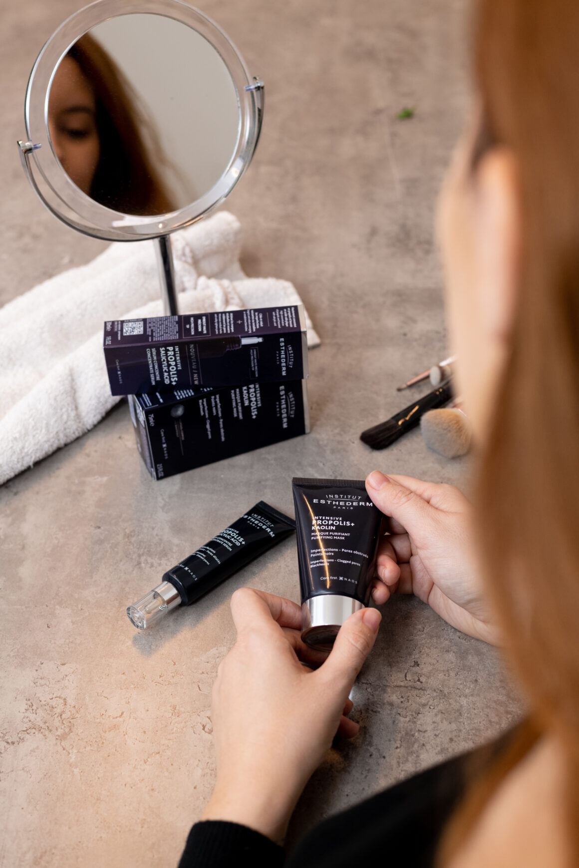 Questa maschera Intensive Propolis+ cattura le impurità, assorbe il sebo in eccesso opacizzando la pelle, mentre riduce la dimensione dei pori e l’insorgenza di punti neri. L’Intensive Propolis+ Masque ha un profumo fresco e delicato e la sua texture in crema non secca la pelle. Dopo l’utilizzo avrete la sensazione che la vostra pelle è davvero purificata. Potete applicarla 2/3 volte alla settimana di sera, dopo la regolare detersione. Potete stendere un sottile strato della maschera e lasciarla agire per 10-15 min e poi sciacquate, oppure potete utilizzarla come una crema, stendendola sul viso e lasciarla tutta la notte, così si assorberà e di mattina vi sveglierete con la pelle morbida. Questa maschera è una vera rivoluzione e una volta che inizierete ad usarla diventerà la vostra preferita. Io la utilizzo due volte alla settimana ed è davvero ottima.