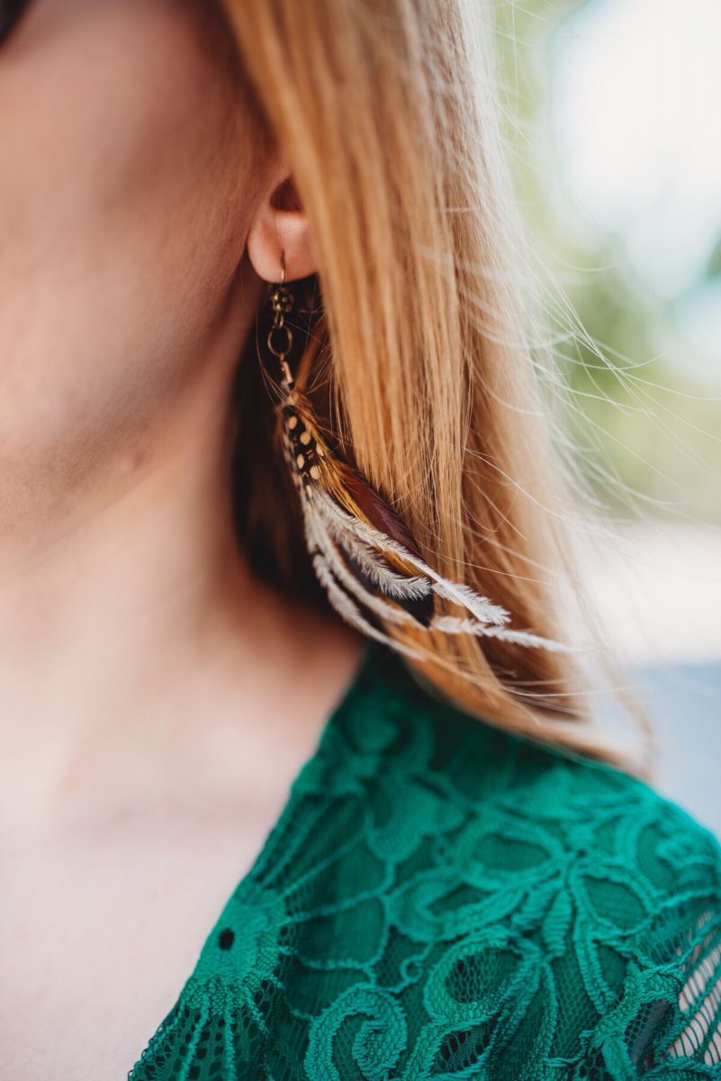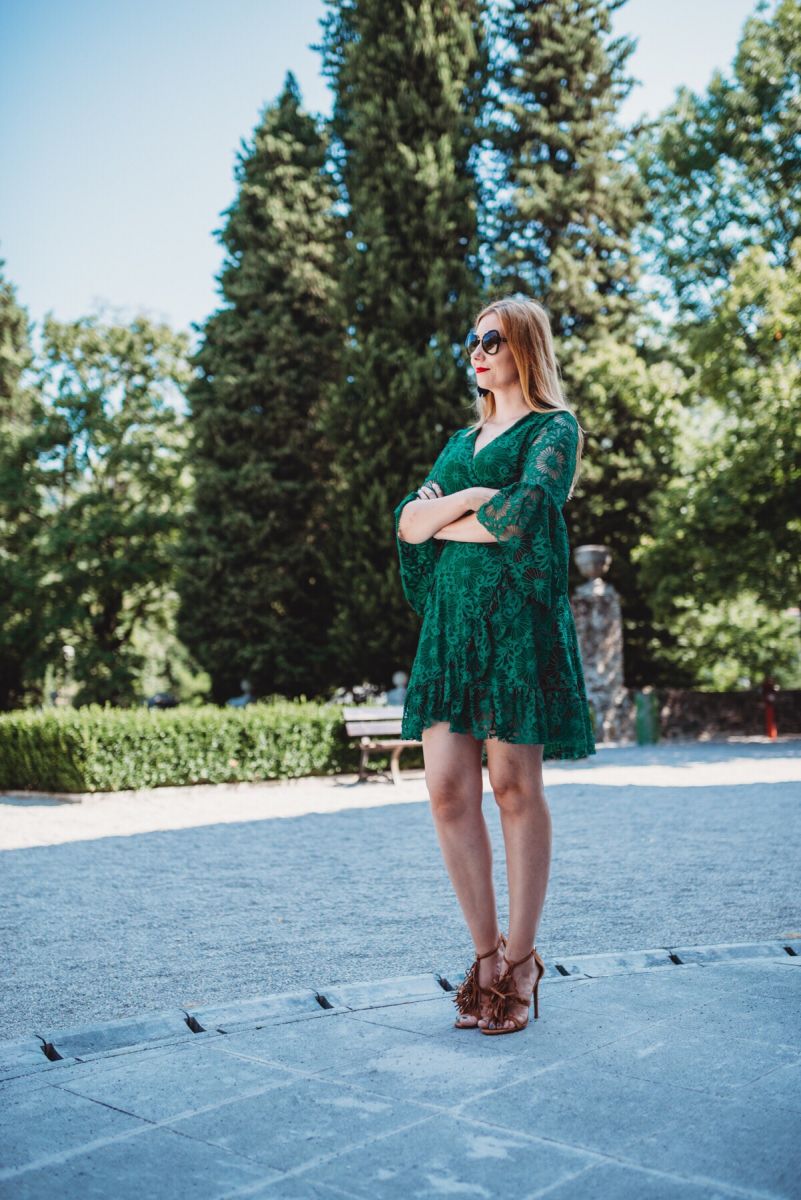 Nel abbigliamento invece il verde va bene abbinato al nero, al bianco, al rosso e al marrone. Sinceramente non ero una grande amante del colore verde, ma poi pian piano ho cambiato l’idea e adesso lo porto spessissimo. Quando ho visto questo abito di Denny Rose che lo vedete qui sotto mi ero subito innamorata. Nella mia lista di desideri l’ho messo subito e ovviamente l’ho ordinato presso negozio Denny Rose Prima moda di Milly. Milly come sempre gentilissima e ormai mi conosce talmente tanto bene che quando faccio i miei ordini da lei (non l’ho mai conosciuta personalmente) sa cosa mi potrebbe piacere e cosa no. Con questo abito abbiamo azzeccato, vero? Al abito verde ho abbinato i sandali marroni e gli orecchini con le piume. Per quanto riguarda gli orecchini li ho ricevuti da Stefania, la proprietaria del negozio Mu&More di Bologna. Un giorno mi manda messaggio scrivendomi di scegliere un paio di orecchini, arrivando ultima (come sempre) rimangono quarto paia, che sinceramente non mi dispiacevano per nulla. Mi sono arrivati a casa, volevo mostrarveli nelle stories, ma tra l’evento, i miei giorni con Mario a Milano e la mia partenza per USA, mi ero scordata. Poi ho visto l’abito verde e ho deciso di abbinare i miei orecchini al abito. Ringrazio Stefania per questo regalo! Dovete sapere che sono una che arriva sempre in ritardo ma prima o poi vi mostro tutto, anche se con un piccolo ritardo;)