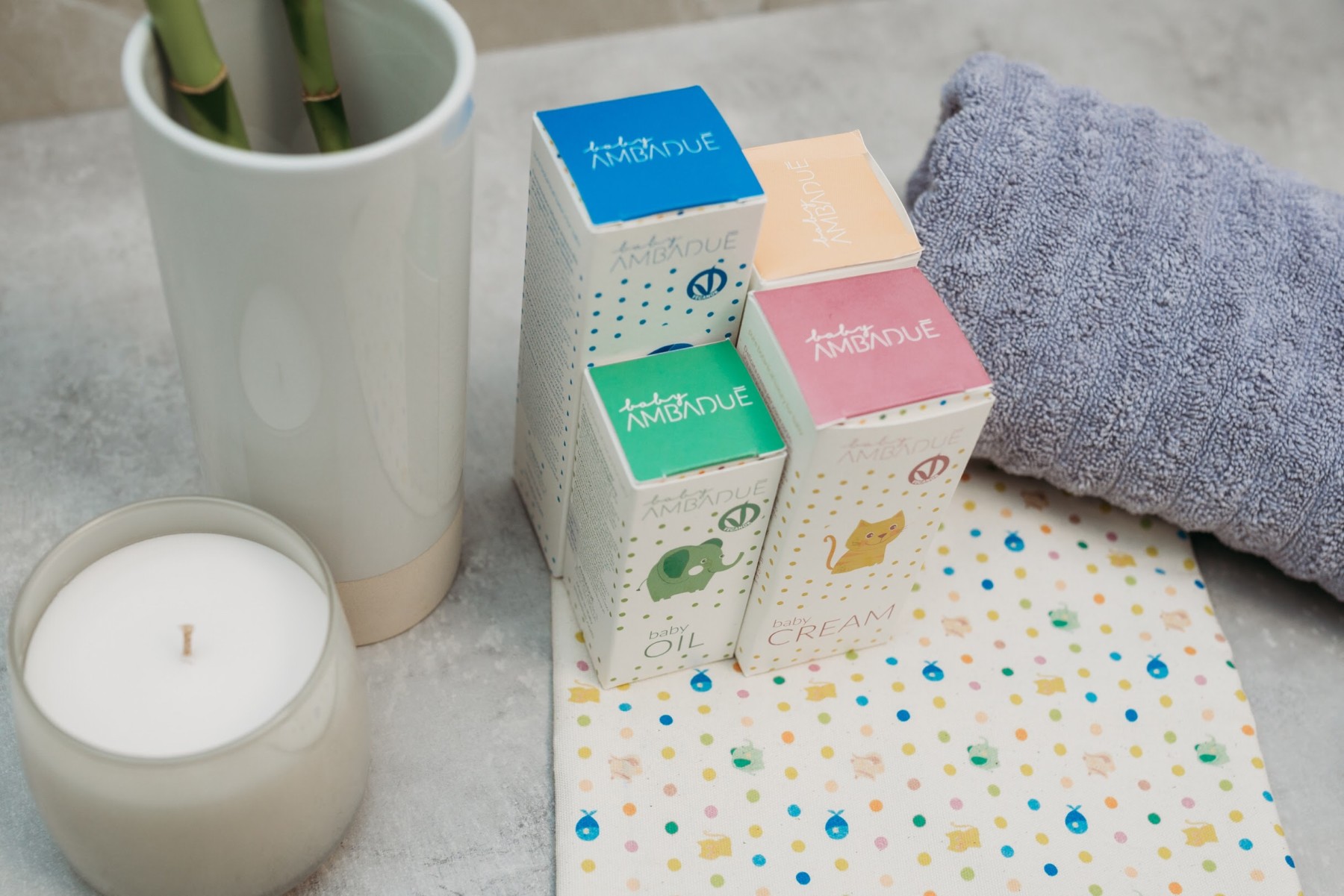 Visto che la pelle di un neonato è molto delicata e sensibile e, soprattutto non si può subito sapere che reazioni potrebbe avere a determinati prodotti, bisogna stare attenti a quelli che si usano per i piccoli. Vi consiglio di leggere sempre le etichette e prestare molta attenzione che i prodotti non contengano parabeni, siliconi, petrolati, oli minerali che spesso li troviamo nascosti dietro i nomi come “petrolatum” e “paraffina liquidum“. Da qualche mese uso i prodotti di bellezza del marchio Ambadué ,ve ne ho parlato già ma, se l’articolo vi è sfuggito, lo potete leggere QUI. Quando l’anno scorso ho conosciuto la fondatrice Maria Paola Merlo mi ha presentato il suo marchio di cosmesi eco bio e poi mi ha detto che stava per lanciare la linea baby Ambadué. Visto che si parla tanto di questo campo della cosmesi green mi ha incuriosita tanto, perché tutti i prodotti che io prendevo per Mario erano tutti di marchi stranieri, difficilmente reperibili in Italia; qui non trovavo quasi niente per quanto riguarda la cosmesi eco bio per i bambini. Ho avuto modo di conoscere la linea baby e me ne sono completamente innamorata! Perché prima di tutto ho notato da subito che gli ingredienti sono stati scelti con cura e tutti di altissima qualità, come si addice ai cosmetici di lusso! La qualità si paga e nella linea baby Ambadué è stata scelta il meglio della chimica amica del green perché solo così si ottiene un cosmetico adatto alla pelle delicata dei bambini. Da una parte ci sono gli ingredienti di altissima qualità e dall’altra, per questa linea, sono state selezionate solo alcune tecniche estrattive dei principi funzionali: sono state selezionate solo le più innovative, appunto per garantire un cosmetico altamente concentrato e funzionale. Qualità, ricerca ed innovazione sono i tre ingredienti principali di questa linea di lusso per i più piccoli di casa. Linea baby Ambadué ha per il momento quattro prodotti: Duo Water&Oil, Baby Cream, Nappy Cream e Baby oil.