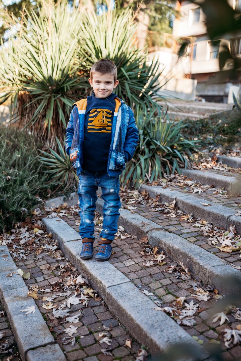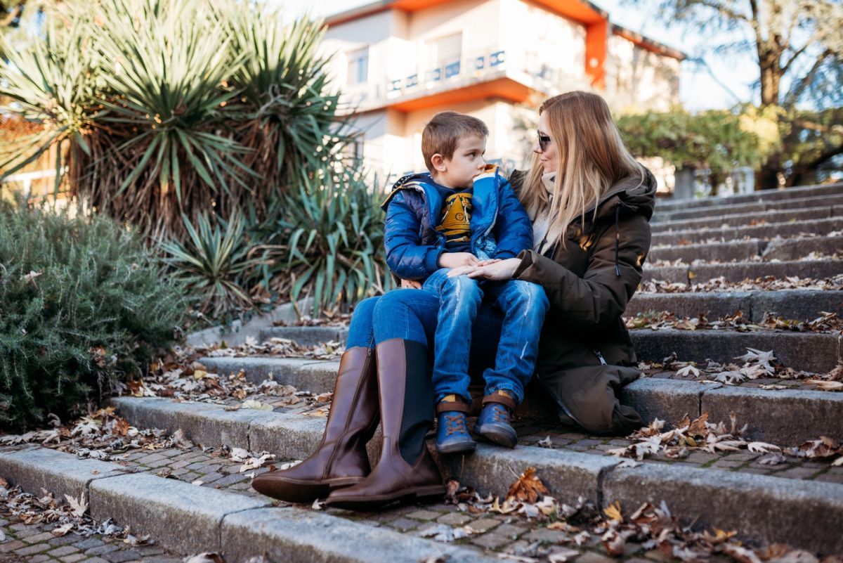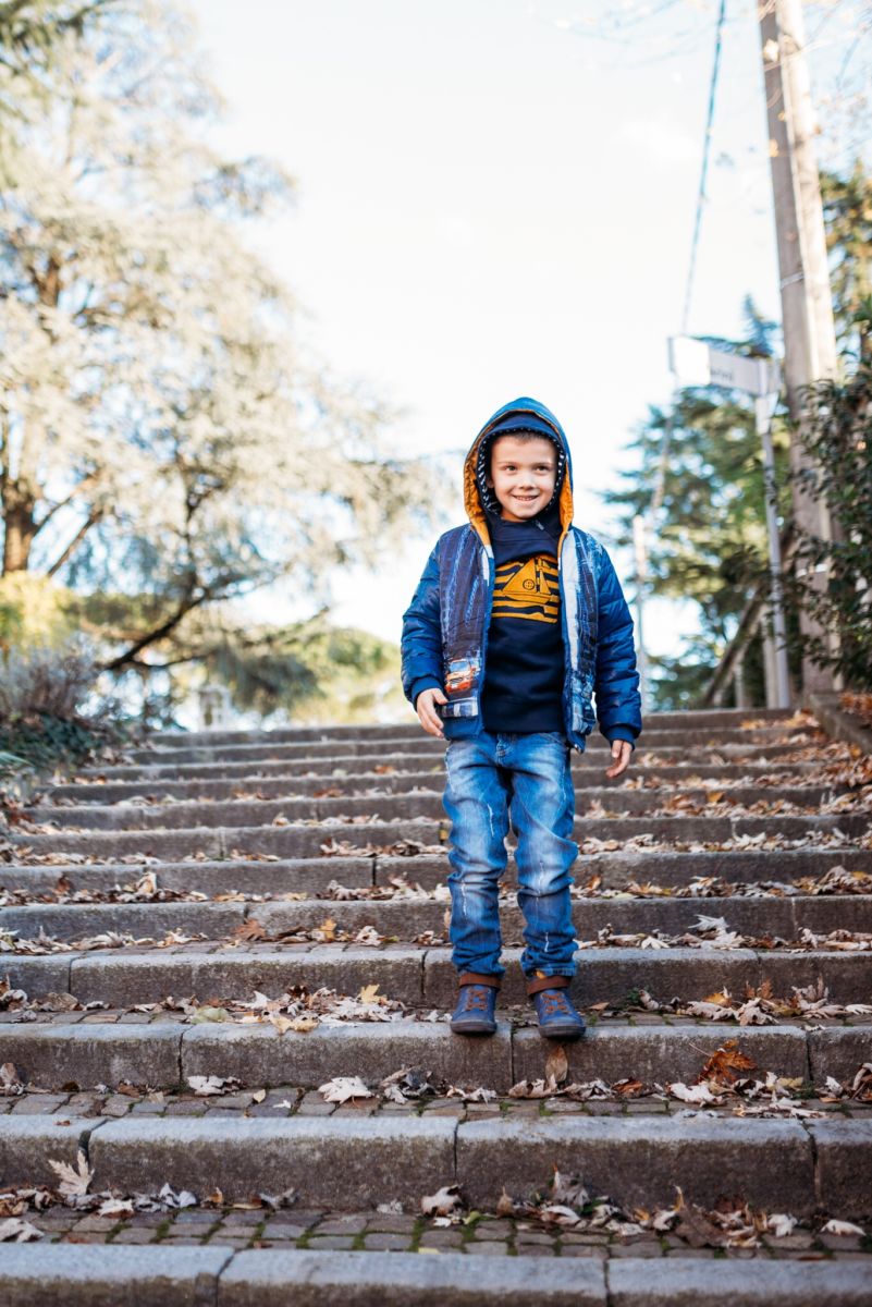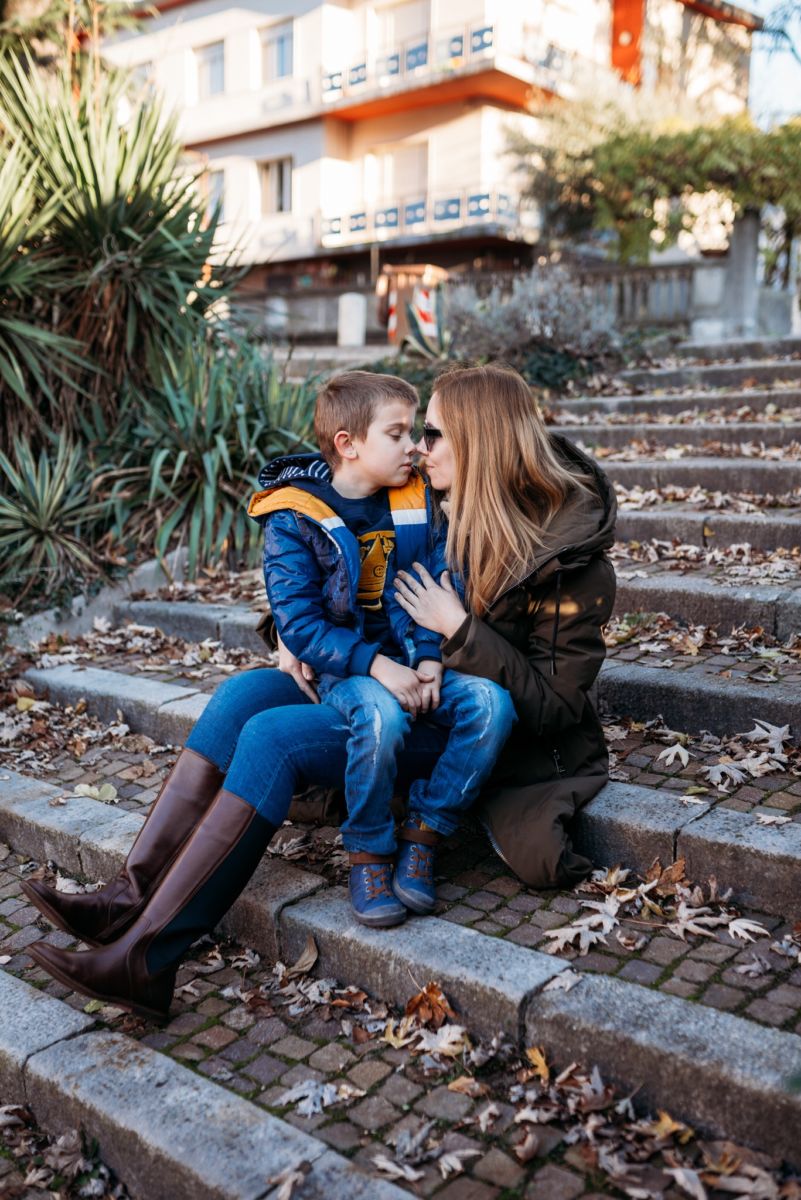 Con i regali invece come siete messi? Io malissimo, non ho ancora preso nulla per nessuno, per fortuna il regalo più facile da comprare sarà quello per Mario 🙂 Mi ripete ogni giorno cosa vuole, così giusto per essere sicuri che non lo dimentichi 🙂 La settimana scorsa, quando sono andata a prenderlo a scuola, lui voleva andare in un parco e passando davanti alla scalinata vedete qui sotto nelle foto, mi ha detto di fermarsi perché aveva voglia di fare dei salti. Ultimamente sta saltando ovunque e da qualsiasi altezza ed è rimasto affascinato quando in tv ha visto dei ragazzi che fanno parkour e vuole imitarli. Così ha iniziato a saltare dal primo gradino fino ad arrivare al quarto; il tempo di girarmi ed era già per terra, caduto e con i pantaloni sporchi. Alla fine, dopo un po’ di reticenza, mi ha anche chiesto di fare una foto insieme. Allora mi sono seduta per terra, lui sulle mie gambe e la fotografa ci ha scattato un po’ di foto. C’è un’altra cosa che ci unisce ovviamente oltre il nostro legame e sapete cos’è? Le nostre scarpe firmate Kickers che ci accompagnano anche quest’inverno. Per Mario ho scelto le sneakers Kickers Iguane marinaio che si abbinano facilmente con tutti i look visto che sono colorate. Io, invece, ho optato per un paio di stivali Kickers Titien marrone che sono l’ideale per questo inverno freddo e piovoso. Alla fine non siamo andati al parco ma siamo rimasti sulla scalinata a divertirci e a saltare tutti e due! Eh si ogni tanto bisogna tornare bambini che fa davvero bene all’umore 😉