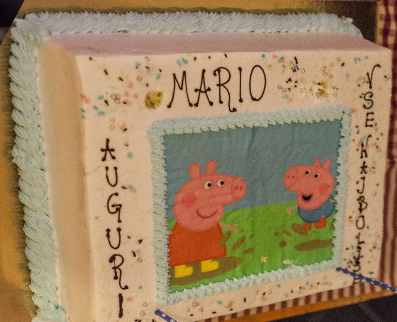 Quando ho portato la torta Mario era felicissimo, guardava le candele e le fontane di fuochi di artificio. Ma sopratutto quando ha visto che sulla torta c’era la Peppa pig e’ rimasto ad osservarla.