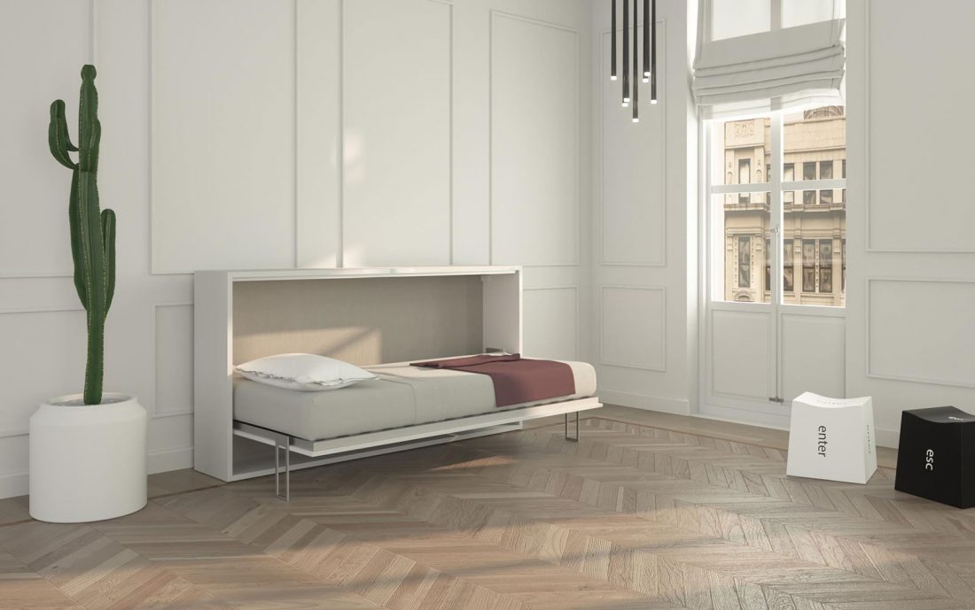 • Se il tuo ambiente è lungo e stretto non devi rinunciare a sfruttarlo al meglio. Anche un corridoio, una stanzetta stretta o uno studio possono diventare una comoda camera da letto. Di giorno il letto a scomparsa singolo orizzontale chiuso occupa una profondità di soli 41 cm e potrai utilizzare la sua solida struttura come un pratico piano d’appoggio. Soluzionisalvaspazio.it (970€)