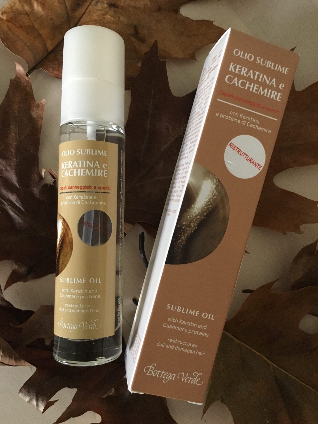 Keratina e Cachemire – Olio sublime: in un solo gesto sublima i capelli danneggiati e secchi, ravviva la chioma donando istantanea luminosità e morbidezza ed è ideale per contrastare le doppie punte.