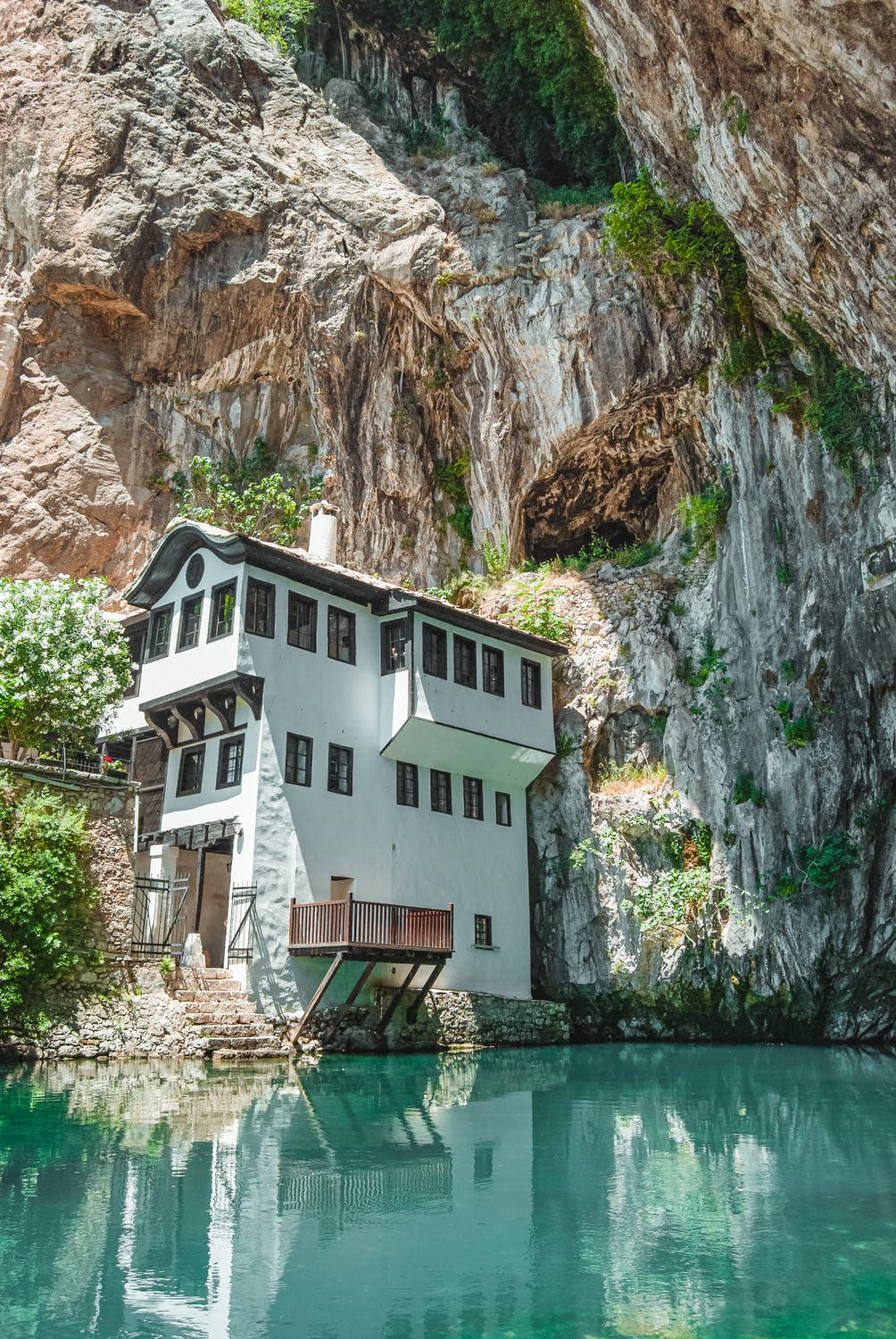 La città di Blagaj, che conta circa 2.000 abitanti, si trova vicino alla città bosniaca di Mostar. Si tratta di luoghi che furono abitati durante il Neolitico, come testimonia l’insediamento rupestre chiamato Zelena pecina. Qui vivevano anche gli Illiri e i Romani. Oggi la città ha una serie di edifici di diversi periodi storici; quindi, il luogo è stato dichiarato monumento culturale della Bosnia ed Erzegovina. Sotto la città si trova Vrelo Bune, considerata la più grande sorgente di fiume carsico in Europa. Accanto si trova Blagaj Tekija, una moschea, che è un importante monumento del primo periodo turco. Potete ottenere maggiori informazioni su blagajtekija.ba