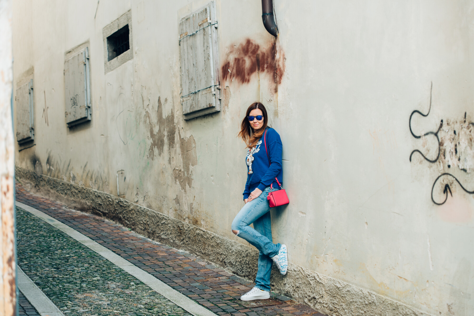 La primavera è arrivata finalmente, o almeno lo spero 🙂 La settimana scorsa finalmente ho trovato un po’ di tempo per scattare qualche foto. Ultimamente, tra lavoro, casa e un progetto nuovo che presto spero di potervi svelare, non trovo più il tempo di fare le foto degli outfit. Nei weekend inoltre preferisco passare il tempo con i miei due uomini. Ho scelto un outfit che porto spesso: un jeans, una felpa e le sneakers, ovviamente gli occhiali da sole che non possono mai mancare. Sul sito di 2Star ho trovato queste sneakers molto particolari, con degli schizzi di pittura. Che ne dite del mio outfit?