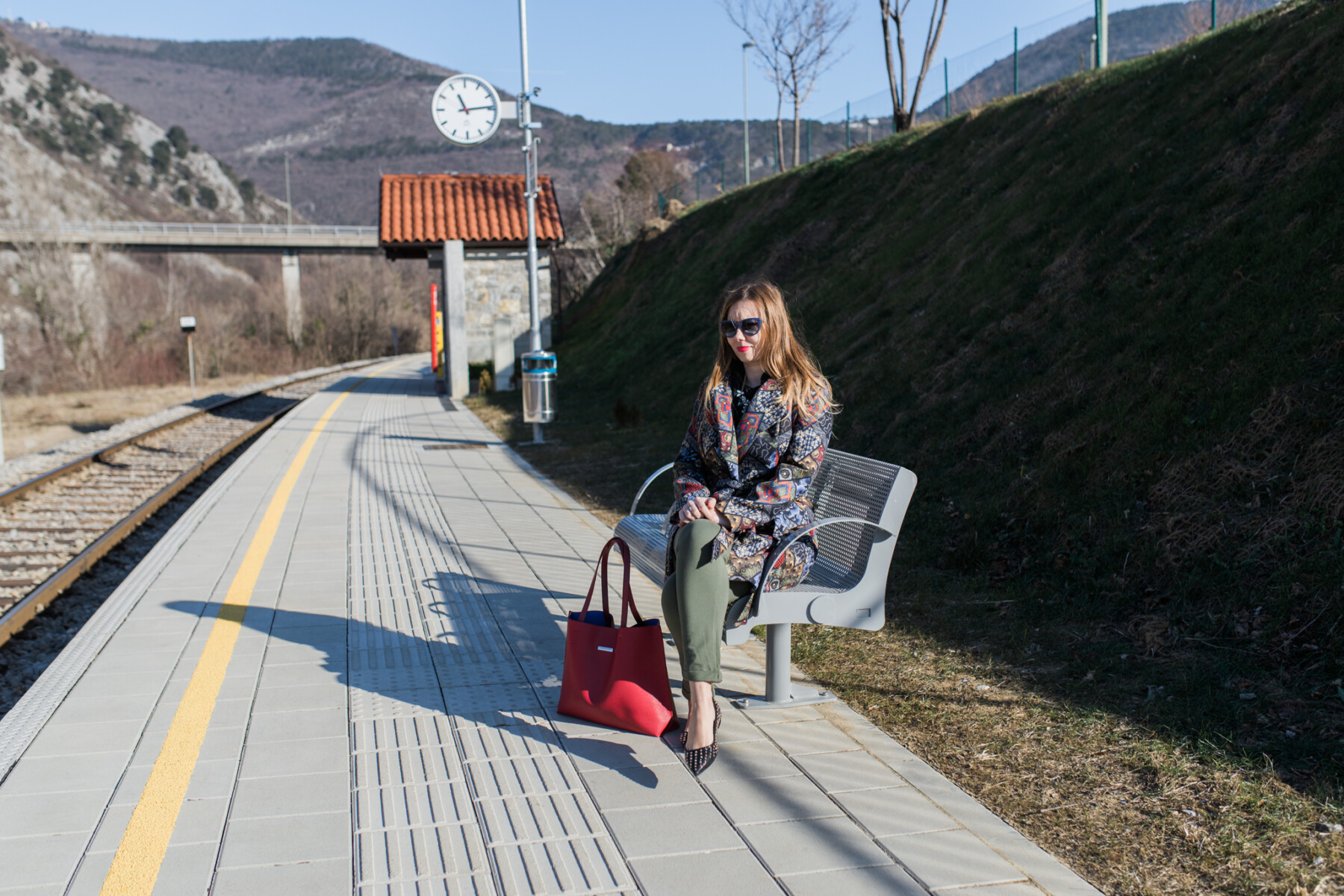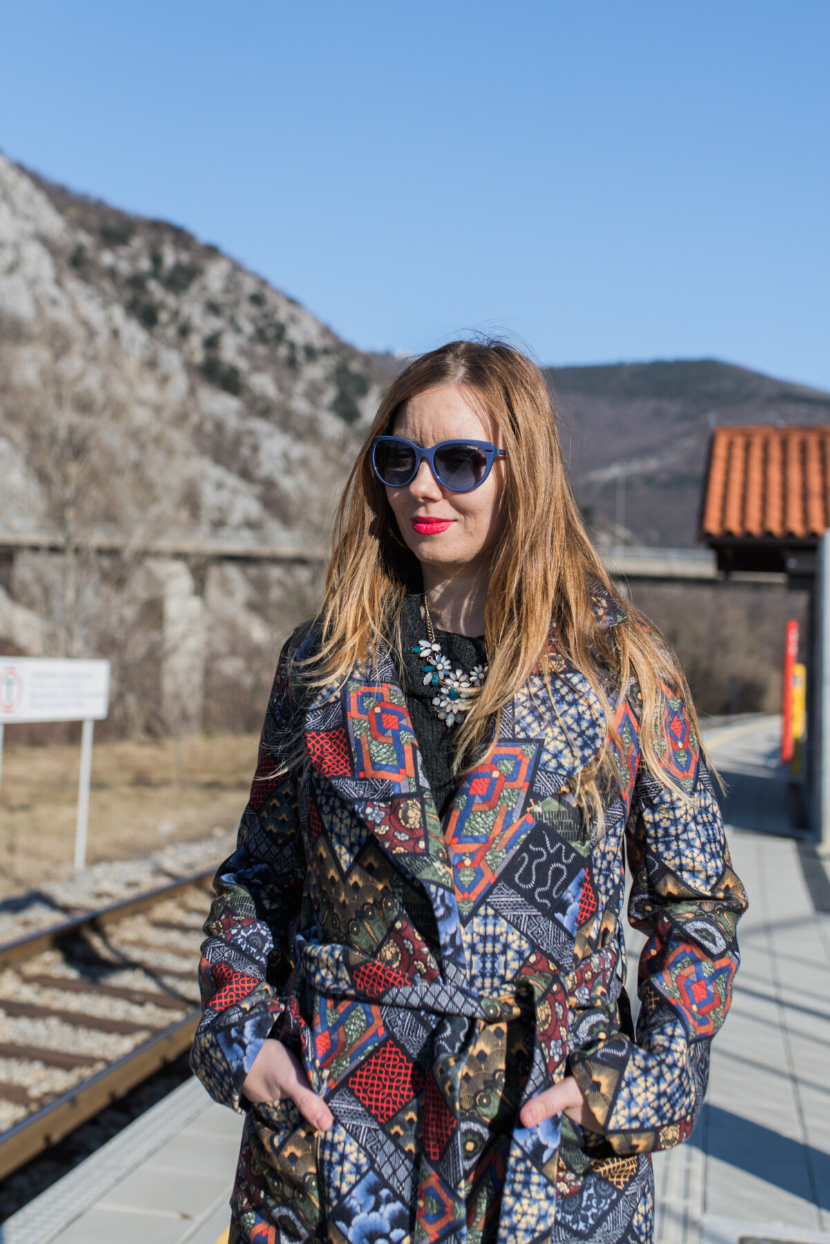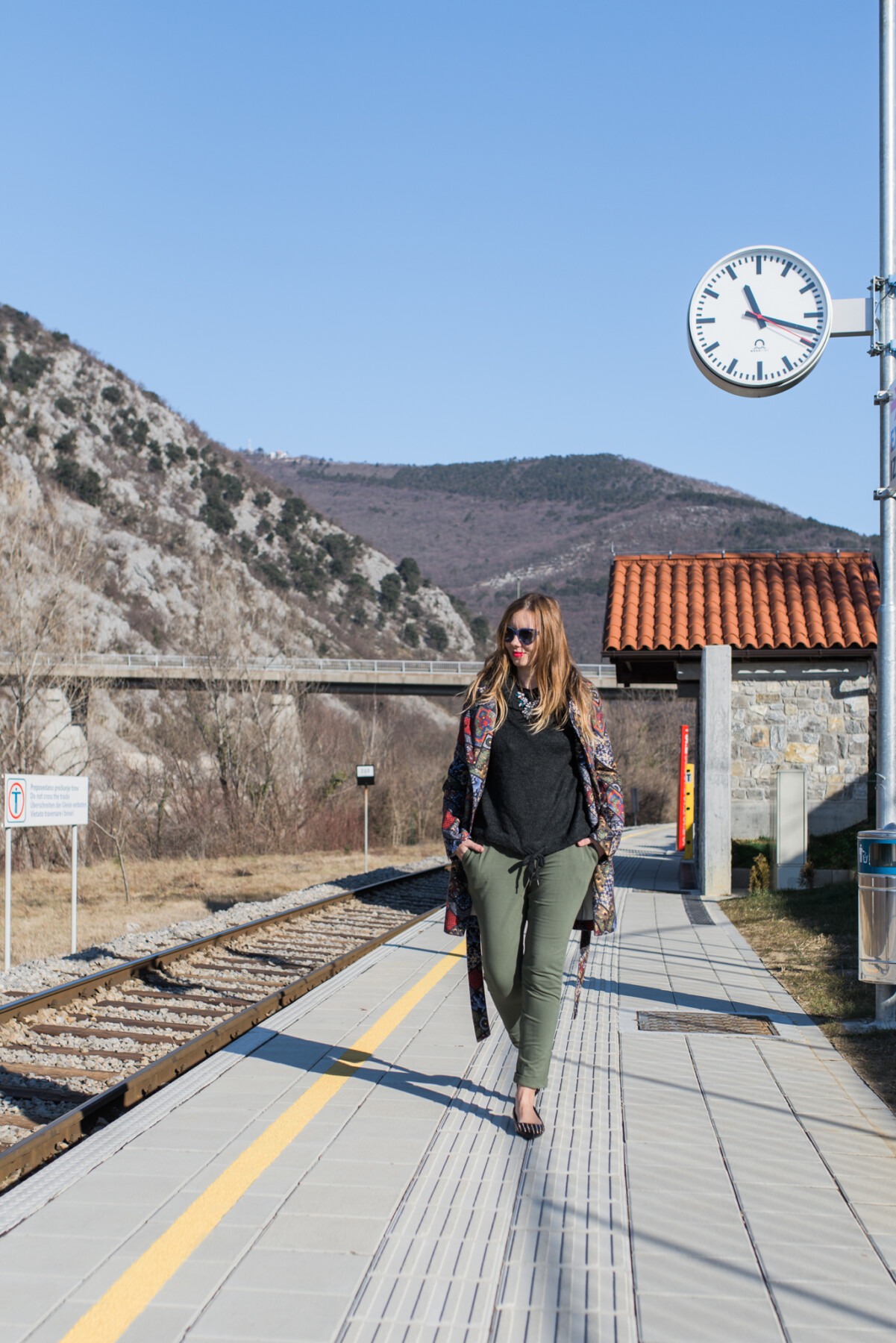 Oggi invece ritorno con un outfit scattato in una fermata del treno in Slovenia. Dovete sapere che 15 anni fa io prendevo quasi ogni weekend il treno (questo ancora prima di avere la patente) per andare a Ljubljana (capitale slovena), dove andavo a trovare gli amici, i parenti ma anche per fare la modella. Dovete sapere che da Nova Gorica a Ljubljana ci si sta un ‘ oretta in macchina, invece col treno ci mettevo anche tre ore. Eh si era lunga, mi ero anche già dimenticata di tutte quelle ore passate in treno. Infatti dal momento che ho conseguito la patente, i viaggi in treno sono diventati solo un lontano ricordo.