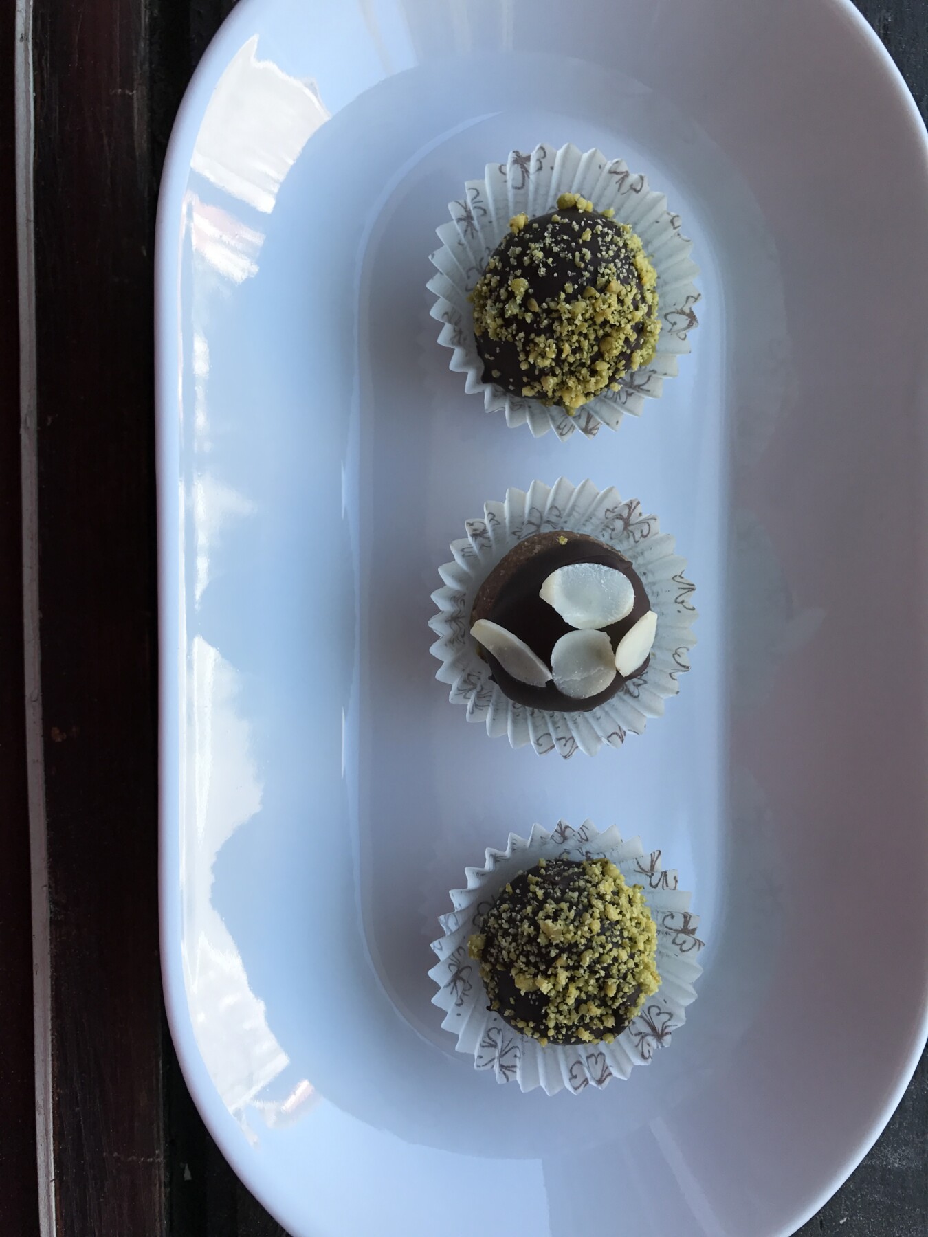 Mettete le noci e i biscotti nel mixer e mixate tutto. Aggiungete al mix di noci e i biscotti il burro fuso, cacao amaro, rum e zucchero a velo, mescolate tutto bene. Se non riuscite a creare le palline aggiungete il latte, la miscela deve risultare compatta e omogenea. Create le palline e mettetele nel frigorifero per almeno 1 ora. Nel frattempo fate sciogliere il cioccolato a bagnomaria. Le palline devono risultare dure, e a questo punto immergetele per 2/3 nel cioccolato e decoratele subito con il pistacchio oppure con le lamelle di mandorle. Mettetele nel frigo per 30 min e servitele.