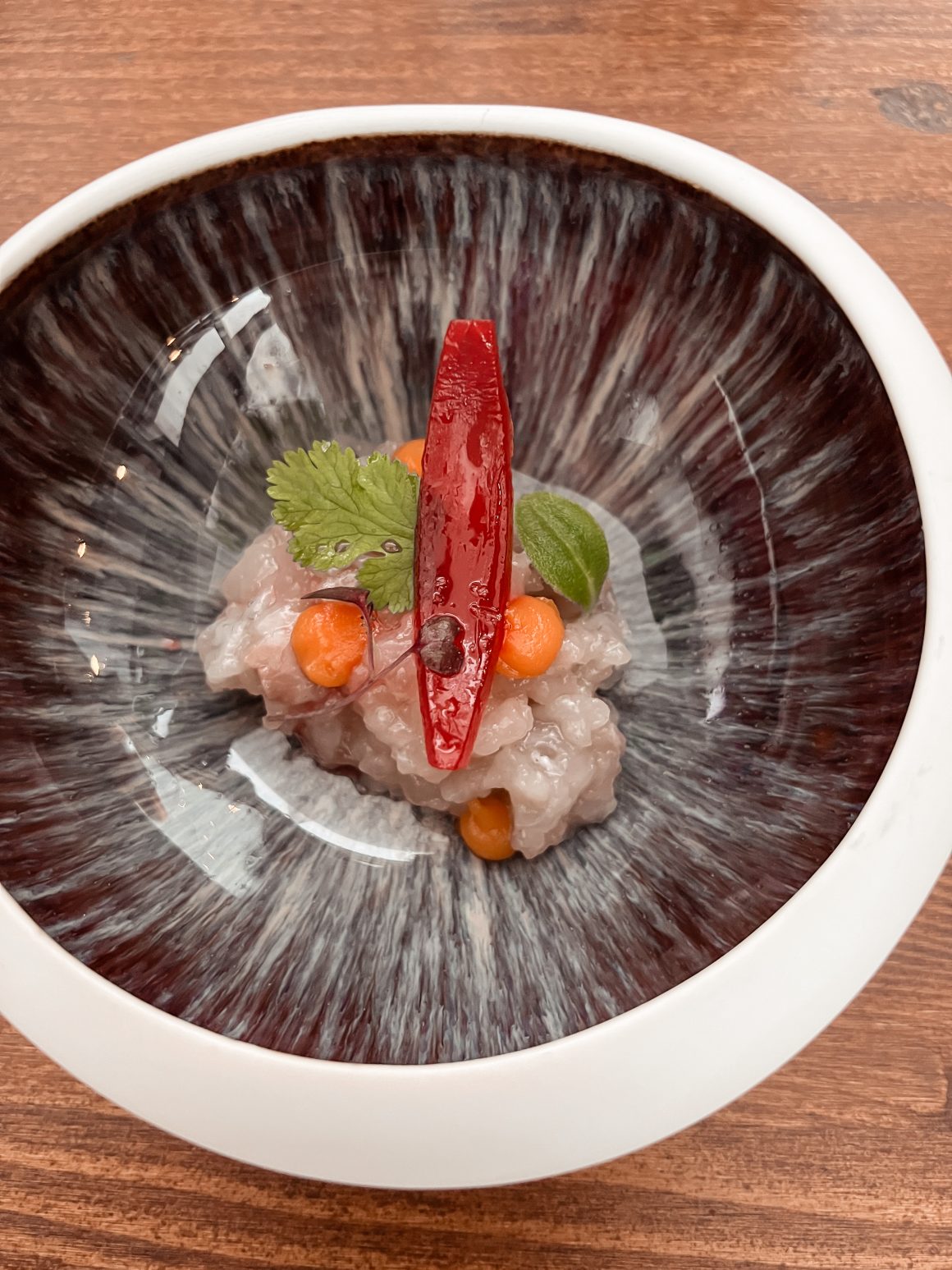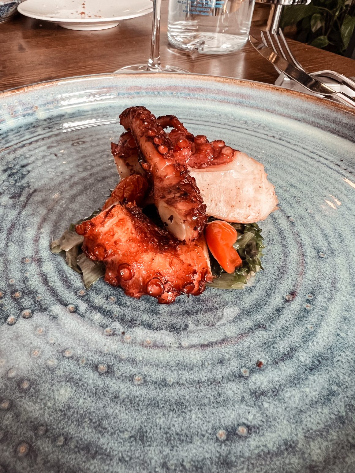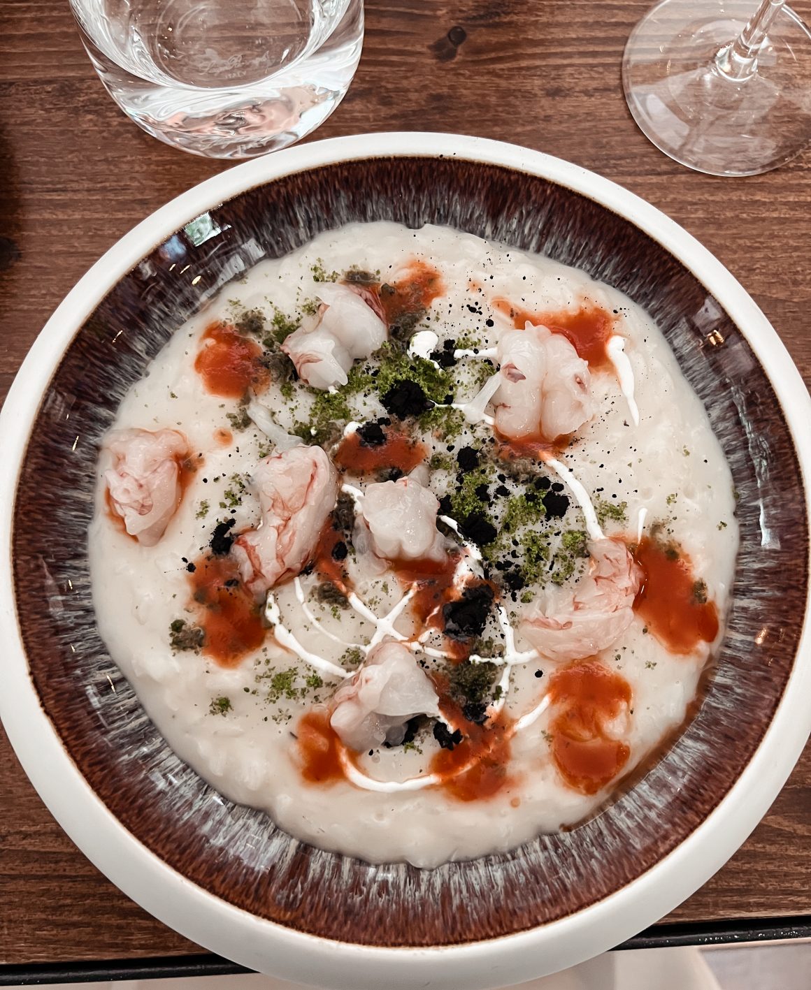 Il nostro pranzo è iniziato con “Nuvola di riso, carbone vegetale, crudo disidratato” e il sommelier ci ha consigliato Gran Cuvée Particolare Brut Rosé Tenuta del Buonamico. Poi ci hanno servito la “tartare di branzino, lime, cipolla in agrodolce, patata americana e coriandolo”. Abbiamo proseguito con il “polpo tre cotture, scarola, acciughe, olive taggiasche e pomodori confit”, questo piatto è stato una vera delizia per il mio palato. Ci hanno servito anche il vino bianco ovvero il M.I.O. Viognier della tenuta del Buonamico. Il nostro pranzo è proseguito con il “risotto al parmigiano, pesto in polvere, carbone vegetale, creme fraiche e crudo di gambero”. E alla fine abbiamo concluso il nostro pranzo con il dolce. Io ho optato per la “mezza sfera, lamponi, gelato al cioccolato e peperoncino, crumble”, mentre la mia amica invece ha scelto il “tiramisu particolare”. Il nostro pranzo è stato una delizia e tutti i complimenti vanno allo chef che è riuscito a creare dei piatti davvero unici e dovete anche sapere che ogni stagione c’è un nuovo menù. Noi abbiamo potuto provare i piatti dal menù che sarà disponibile ancora per qualche giorno.