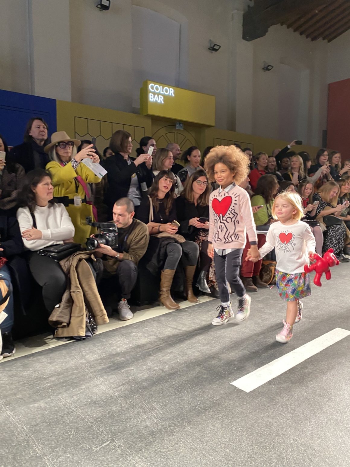 La sfilata di Benetton è stata firmata da Jean-Charles de Castelbajac che è molto street, e come sennò? Lo street style e la street art sono presenti anche attraverso i capi mimetici, a stelle, a righe o impreziositi dai graffiti di Keith Haring – grazie a una collaborazione con la Fondazione Haring, voluta dallo stesso JCC, che ha condiviso con l’artista newyorkese una grande amicizia.
