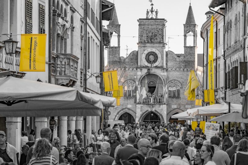 Il secondo evento che segnalo è PordenoneLegge, festa del libro con gli autori, che dal 2000 fa conoscere la città a centinaia di autori e attira persone e coinvolge tutti: dagli adulti ai ragazzi, attraverso percorsi con le scuole. Per tutto il tempo della kermesse, le strade si tingono di giallo, colore scelto che ormai lo rende distinguibile.