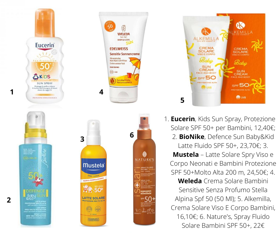 Queste sono in realtà istruzioni che dovrebbero essere seguite a tutte le età per proteggere dagli effetti dannosi di troppo sole. Soprattutto, tutti dovrebbero proteggersi dal sole forte e la pelle con tessuti adeguati. Solo dall’età di sei mesi arriva l’uso della protezione solare. Bisogna stare molto attenti a quali protezioni solari usare per i vostri figli. Dovete usare prodotti che non contengono sostanze chimiche che assorbono la luce solare. Tali prodotti possono, tra le altre cose, irritare la loro pelle e causare dermatiti da contatto.