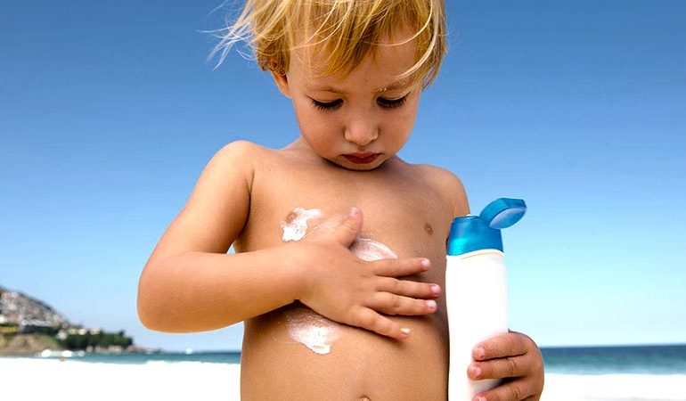 Bisogna proteggere la pelle del vostro bambino fino dal primo anno, soprattutto evitando i raggi del sole durante il picco di radiazione. Rimanete all’ombra, usate gli ombrelli sulle carrozzine, vestite il bambino in modo appropriato. Potete creare protezione fisica con i vestiti e un cappello, quindi coprire quanta più pelle possibile. Non fate affidamento solo sulla previsione generale che dovresti uscire dal sole tra le dieci del mattino e le quattro del pomeriggio. Controllate le previsioni dell’indice UV, che vengono pubblicate ogni giorno e indicano quanto sono forti radiazioni UV. Sono necessarie cautela e protezione per un indice superiore a tre e il sole diventa molto pericoloso per un indice superiore a sette, in quanto può causare danni alla pelle, come ustioni, in brevissimo tempo.