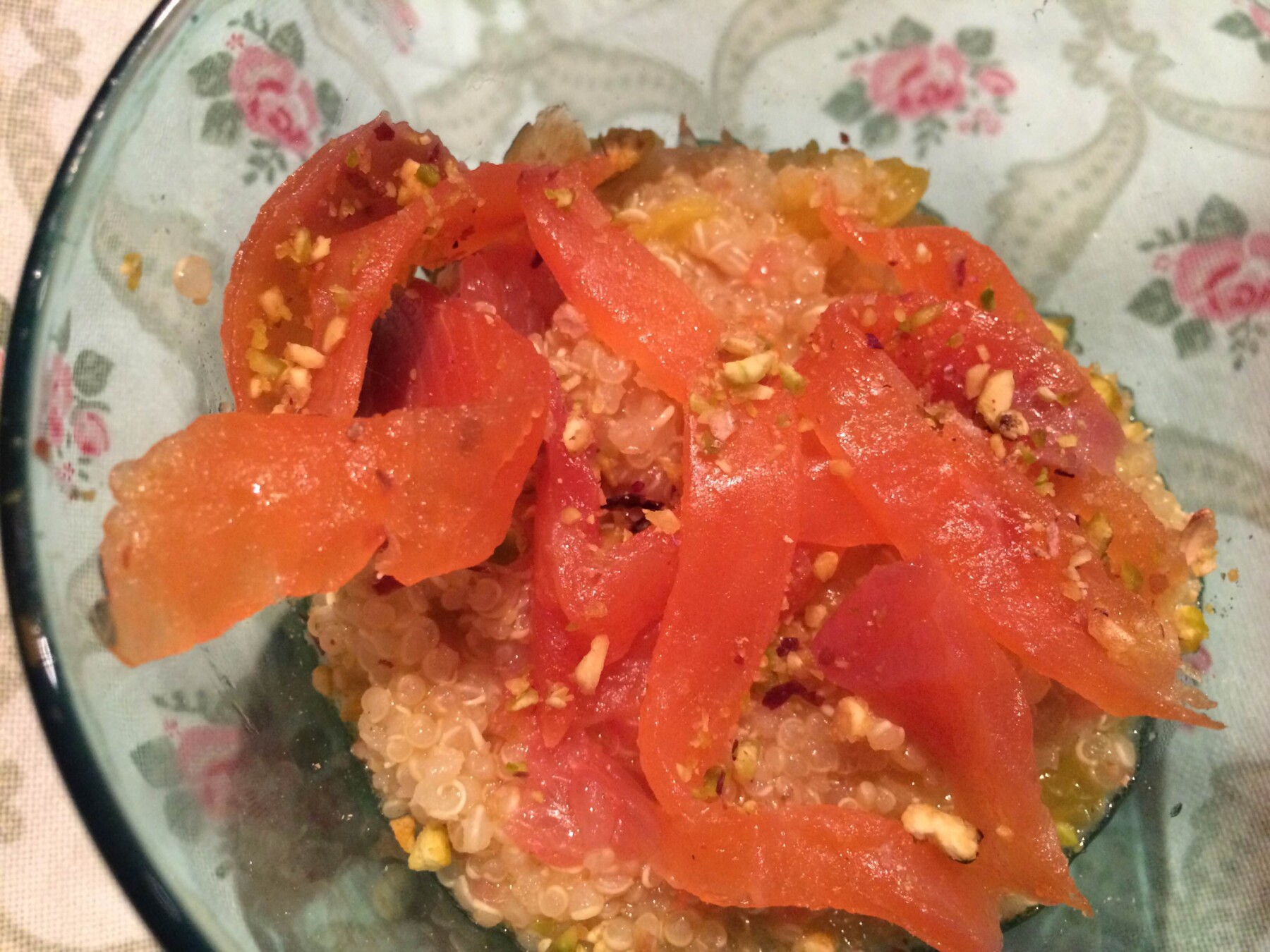 Nell’ultimo post ho parlato di cibo ed oggi ritorno su questo argomento 🙂 Oggi vi presento un antipasto freddo a base di pesce ed un secondo a base di carne. Nella prima ricetta ho usato la quinoa. La quinoa appartiene alla stessa famiglia degli spinaci e delle barbabietole, spesso la scambiano per un cereale. Il suo contenuto proteico è superiore a quello del riso, del miglio e del grano. Non contiene glutine perciò può essere consumata tranquillamente anche da chi soffre di celiachia.