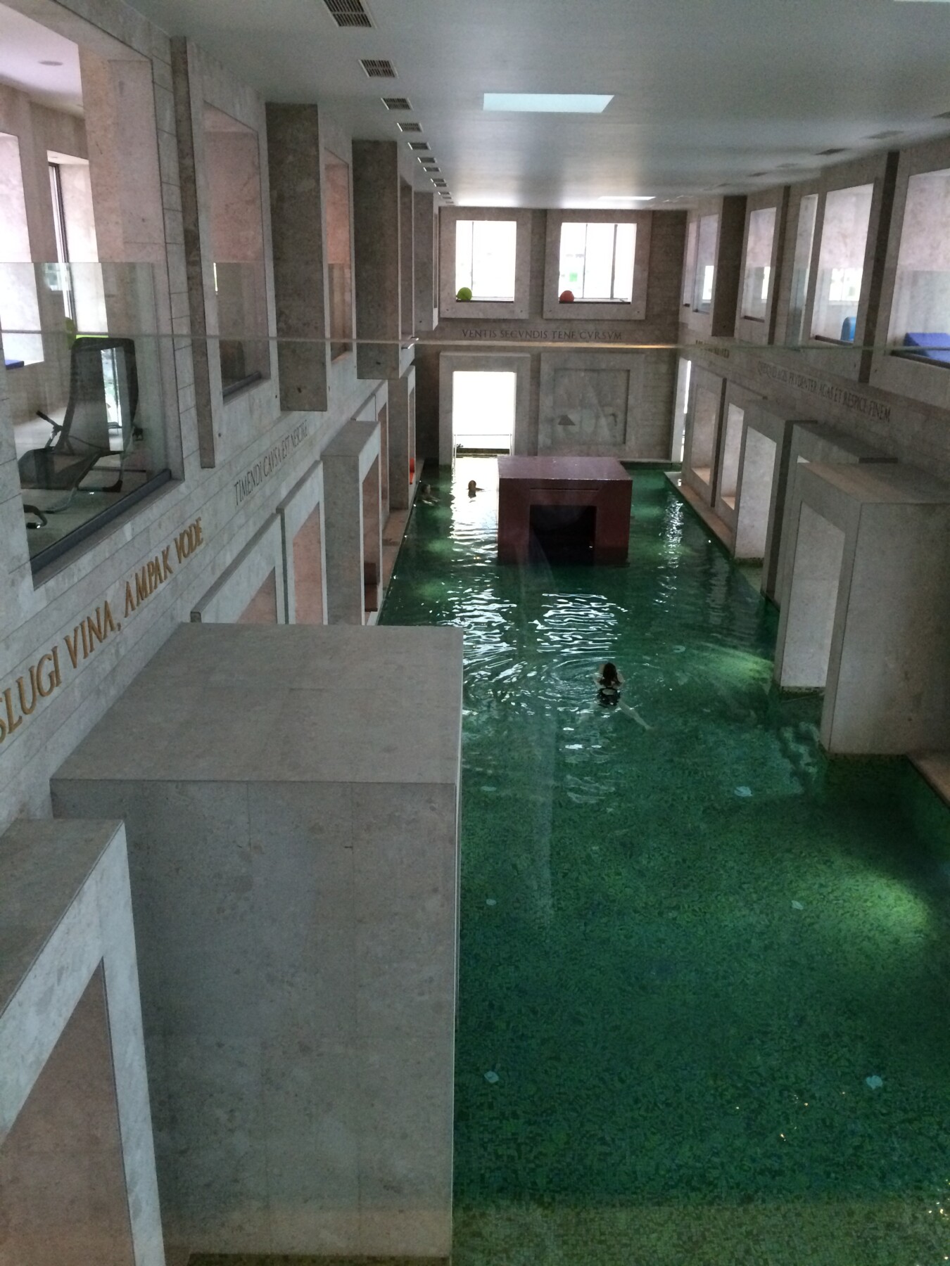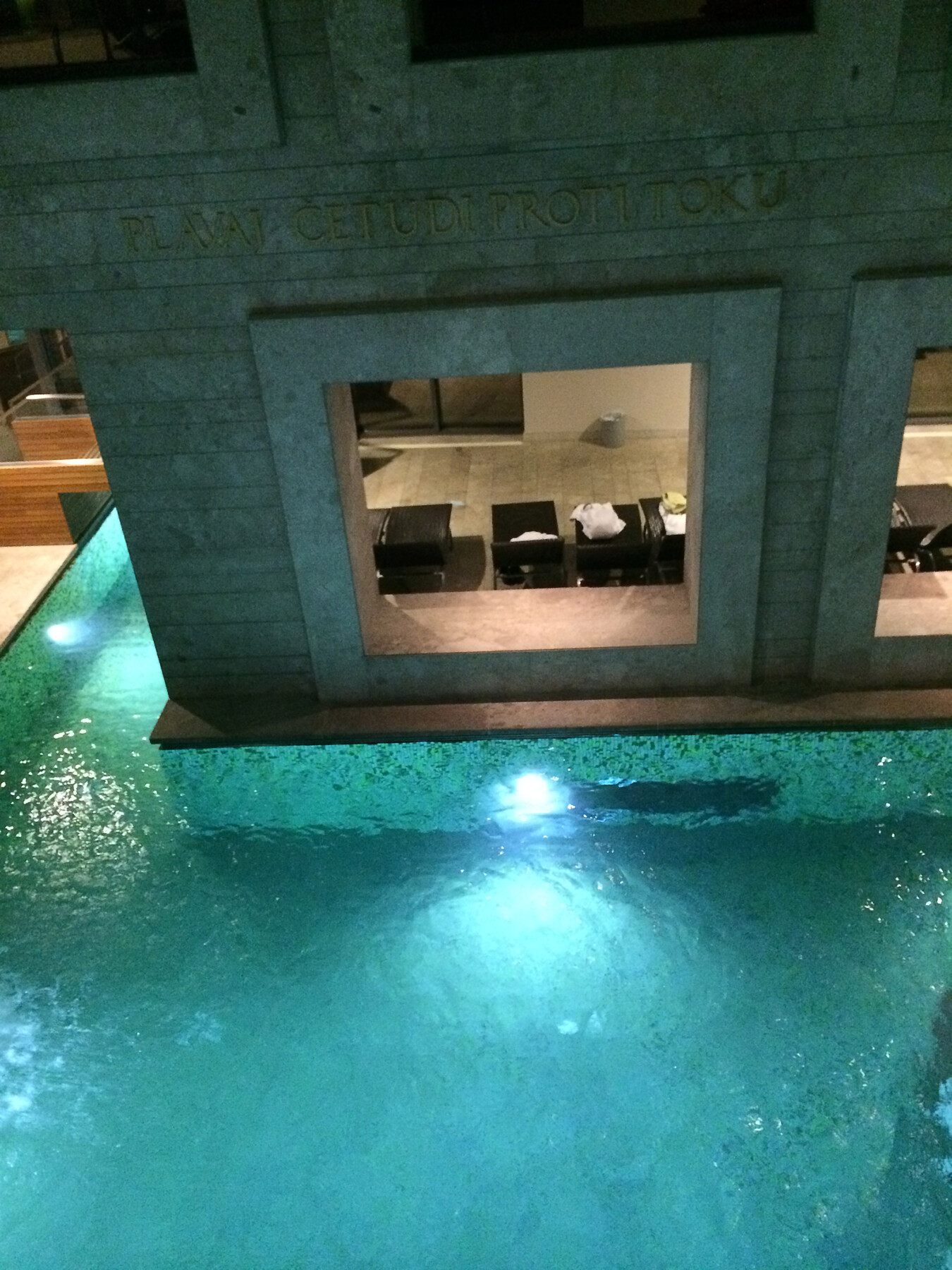 EN: Saturday, as I mentioned, Piero and I went to Slovenia, more precisely at the spa Roman Spa. Slovenia has about 25 spa facilities, which are a lot for a country of about 2,000,000 inhabitants. Three years ago we discovered these spas and since then frequent them. The name comes from the fact that in 39 before Christ, the Romans came up here and built the first pool with warm, hot and cold water. The hotel was reopened in 2008. Throughout the hotel you can find writings in Latin and translated into Slovenian. The hotel is located on a hill where you can enjoy a beautiful view. The hotel’s staff is fluent in English, German, Croatian, but there’s also someone who speaks Italian. On the website you can find the hotels offers, but usually I book with Booking.com where you can also find up to 50% off. At the spa you can find a big swimming pool that is connected to the outside. There are three other outdoor whirlpools. On the upper floor you will find three small tanks, perfect for couples, especially in the evening when the lights are dim, very romantic. There is also a great space saunas and a spa, the staff is very friendly. Usually, when we visit this place, we eat outside the hotel because if not we eat too much 🙂 But this time we decided to eat in one of two restaurant within the hotel. In the restaurant were we eating at, each week the chef offers two menus, one with fish and one with meat, with five courses. But there is also a restaurant where they offer a buffet menu. The surroundings of the hotel is full of interesting places, but I will talk about that another time.