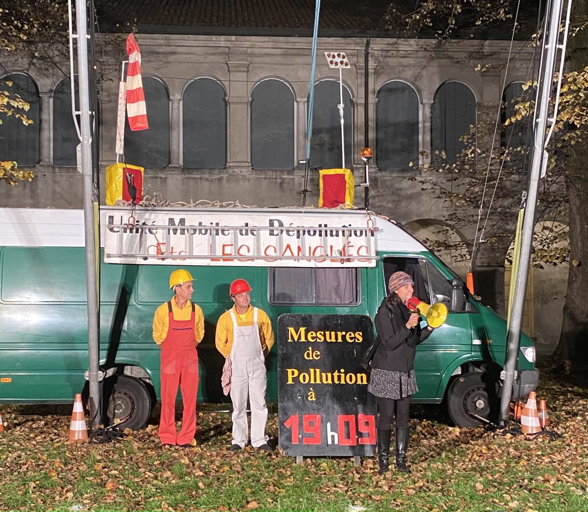 Invece quella stessa sera abbiamo visto lo spettacolo di inaugurazione del Festival nel Chiostro del Museo Diocesano, grazie al contributo del Gruppo TeaLa brigade de dèpollution della compagnia francese Les Sanglés, straordinario e fascinoso spettacolo “aereo – ambientale” –  programmato in collaborazione con La Francia in Scena, stagione artistica dell’Institut français Italia / Ambasciata di Francia in Italia e con il sostegno della Fondazione Nuovi Mecenati – in cui un furgoncino si trasforma in circo ambulante per le rocambolesche ricerche ambientali di una squadra di acrobati intenti a contrastare l’inquinamento atmosferico. Ci è piaciuto tantissimo lo spettacolo e anche il resto del pubblico l’ha apprezzato.