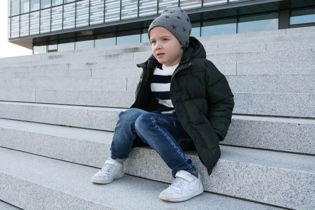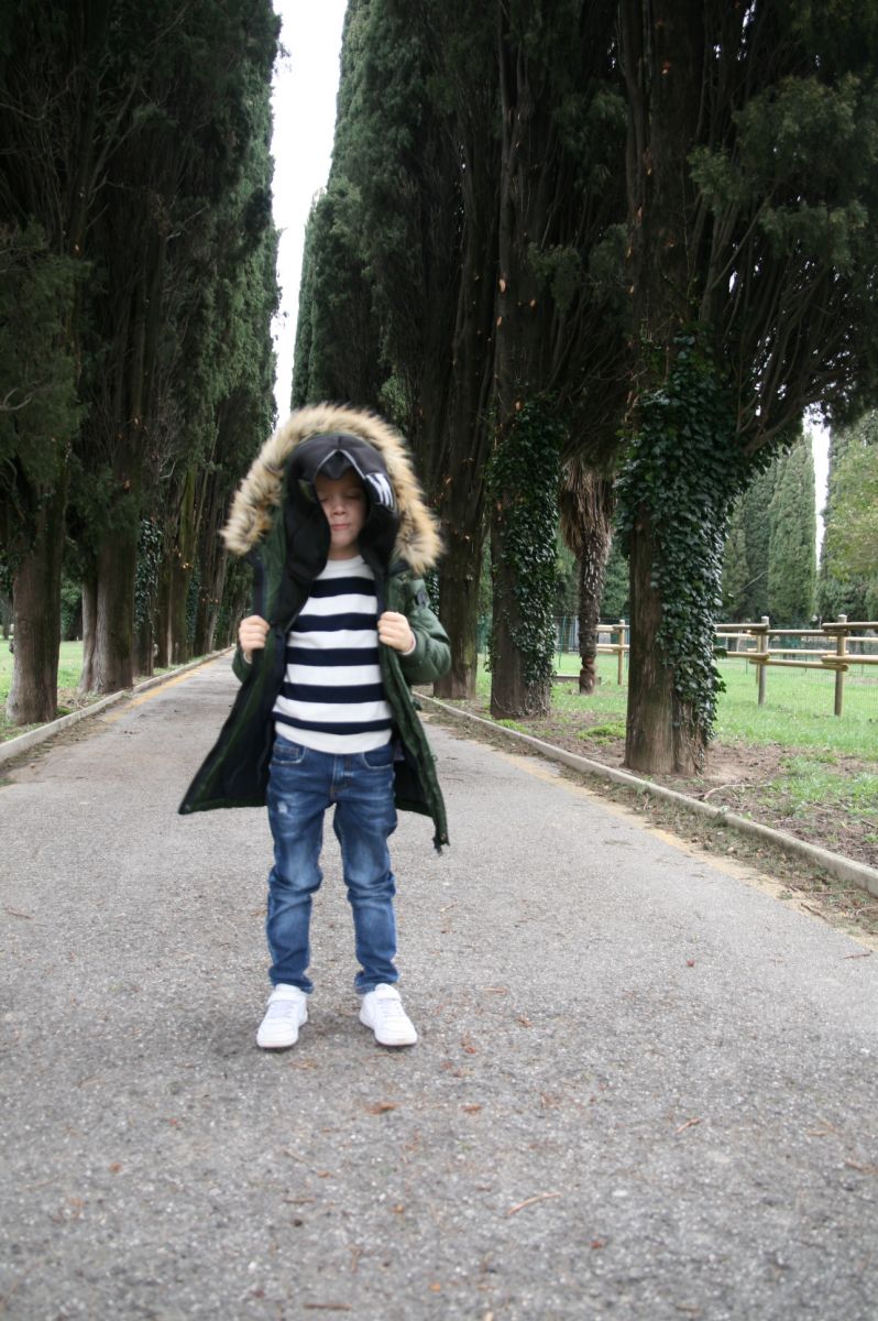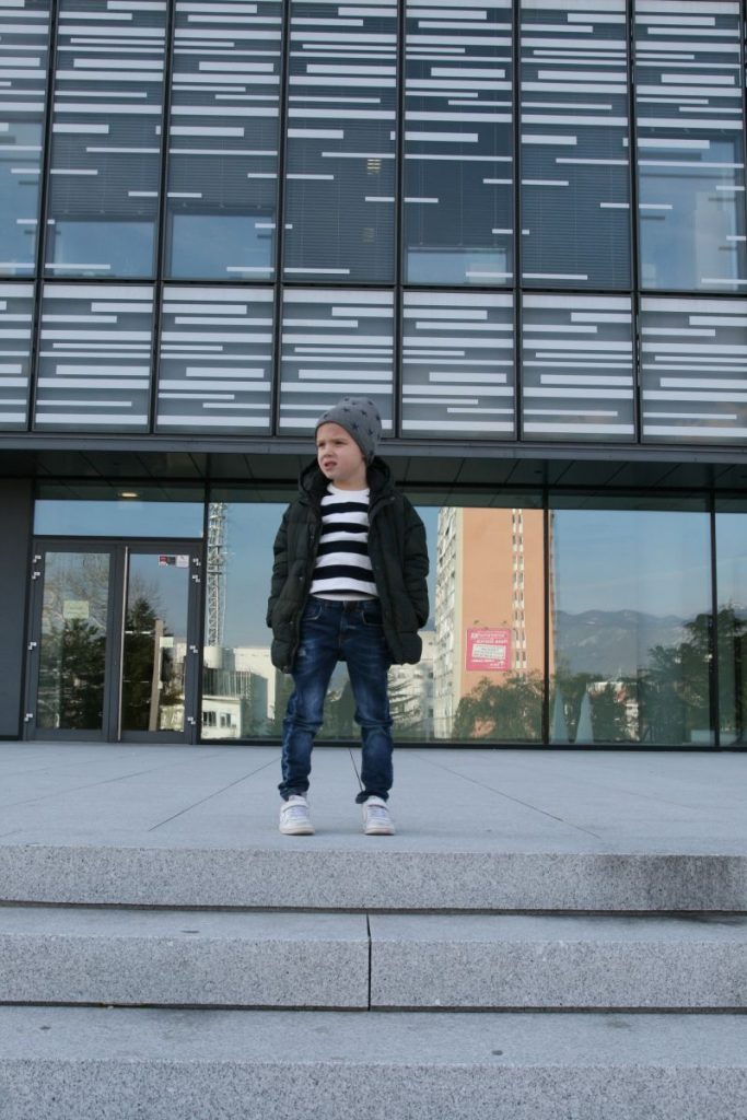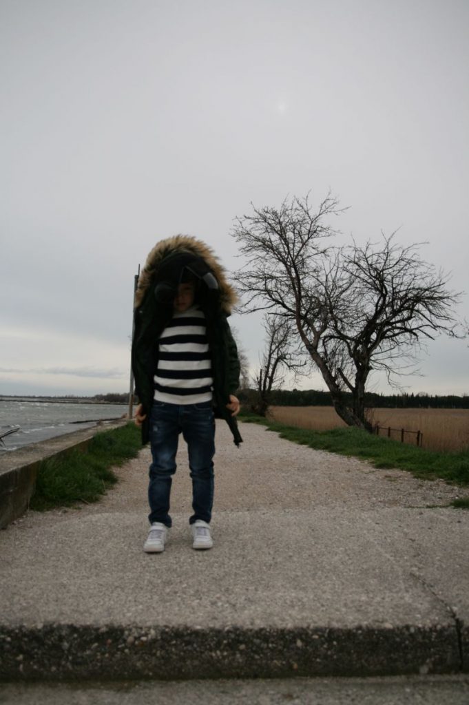 Una volta arrivati sul posto, uscendo dalla macchina, siamo stati travolti dalla bora. Eh si, qui da noi la bora è famosa, ma non ce la aspettavamo proprio domenica, visto che quando siamo partiti da casa non c’era l’ombra di essa. Volevamo farci una passeggiata, ma dopo 5 minuti abbiamo cambiato idea e siamo tornati verso la macchina, però una foto l’abbiamo comunque fatta! Tornando a casa ho visto una bellissima location, che prima d’ora non avevo mai notato, così ci siamo fermati anche lì, ma il vento era troppo forte purtroppo ed anche lì abbiamo fatto solo una foto. Secondo voi ho rinunciato alle foto? Ovviamente no 😉 Arrivati a casa ho visto che da noi non c’era nemmeno un soffio di vento, così alla fine ho deciso di fare le foto davanti a casa. Ieri ė successo che Mario era vestito allo steso modo anche per la scuola, solo che avevamo cambiato il giubbotto e così nel pomeriggio ho deciso di fargli altre tre foto in un’altra location. Come potete vedere alla fine stesso look in quattro location diverse, ma direi che la location alla fine ha importanza fino ad un certo punto, l’importante è divertirsi a esplorare il proprio territorio e scoprirne sempre di nuove come facciamo noi!
