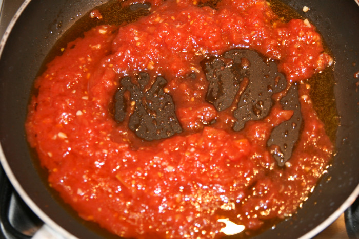 Stavite gljive u toplu vodu za 10 minuta. Ocijedite gljive, filtrirajte vodu, i nasjeckajte gljive. Oljustite bijeli luk, sitno ga isjeckajte. Zagrijte 4 kasike ulja, dodajte bijeli luk, malo crvene paprike, a zatim dodajte isjeckani paradajz. Posolite, dodajte malo secera i kuvajte sos za 5 min. Dodajte vrganja u umaku i jednu kutlacu njihove filtrirane vode, i kuvajte 10-15 minuta. Stavite u lonac vodu da provri, dodajte sol, kuhati tjestenine. Ocijedite tjestenine, prebacite jih u posudu s umakom. Dodajte persin, promijesajte, zacinite i odmah posluzite.