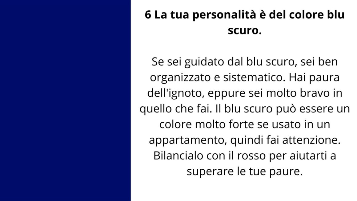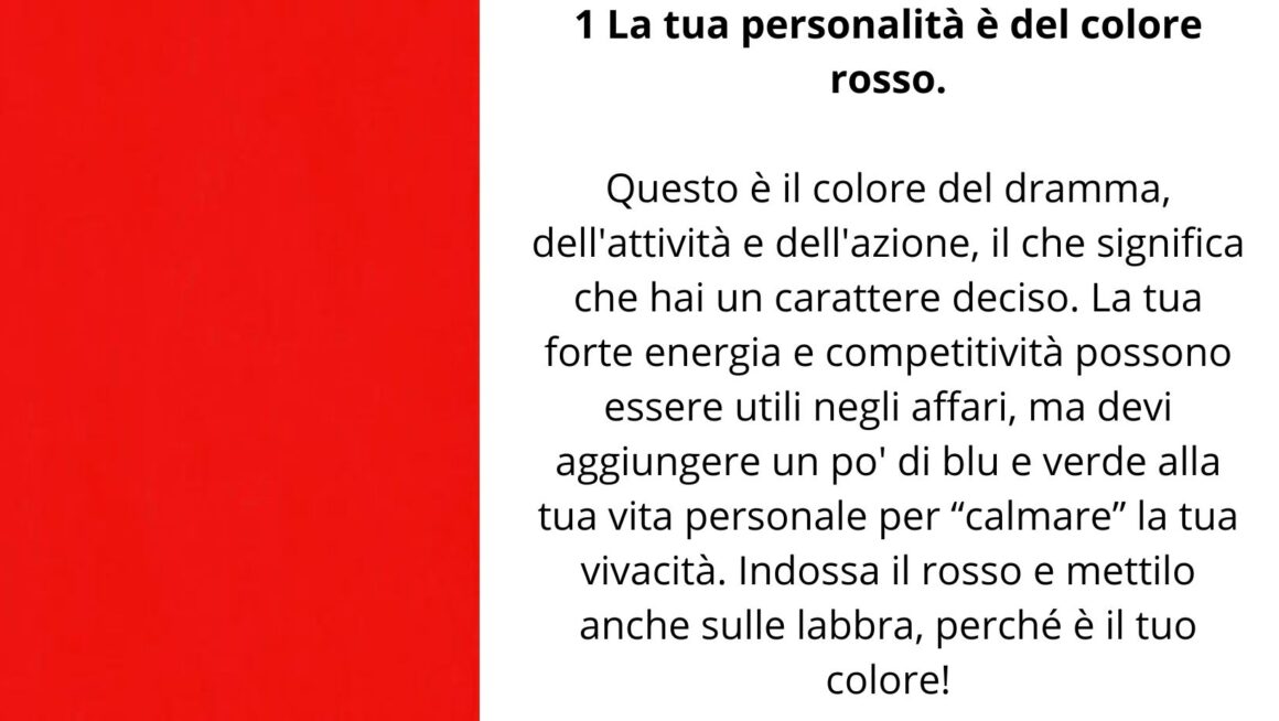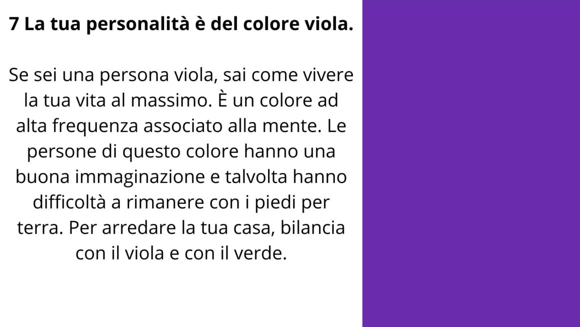 Se il tuo compleanno è il 15/09/1971, somma 1+5(giorno) +0+9(mese)+1+9+7+1(anno)=33 e poi somma 3+3=6. Quindi ottieni un numero a una cifra, ora abbina questo numero al colore corrispondente e leggi i risultati.