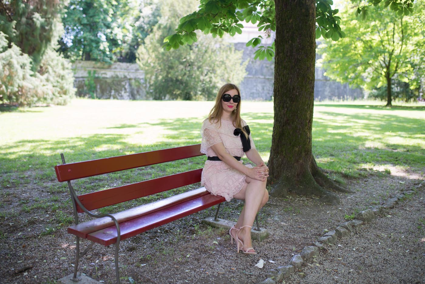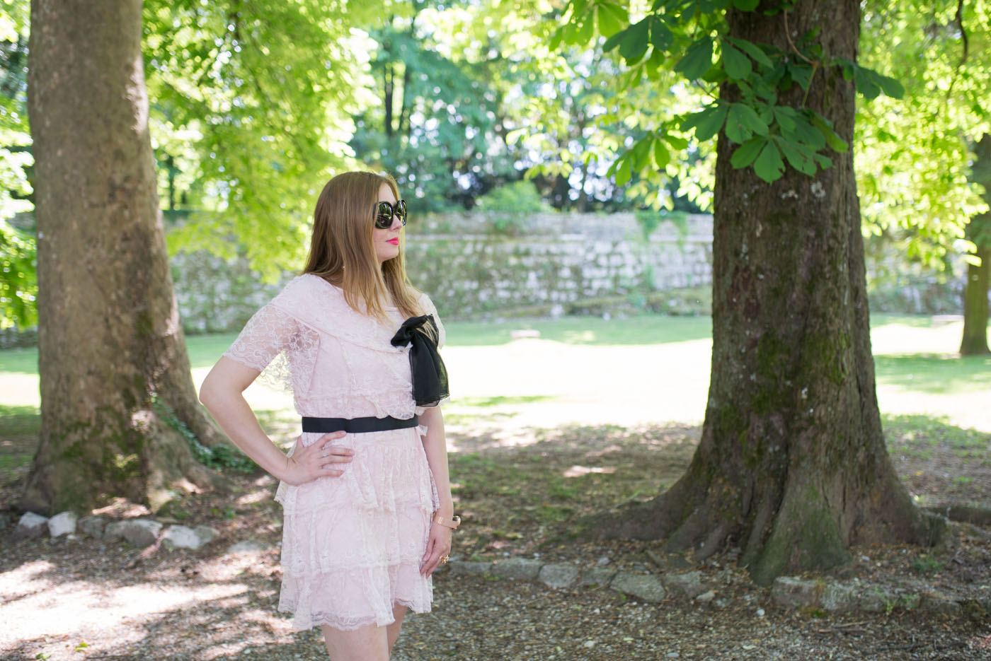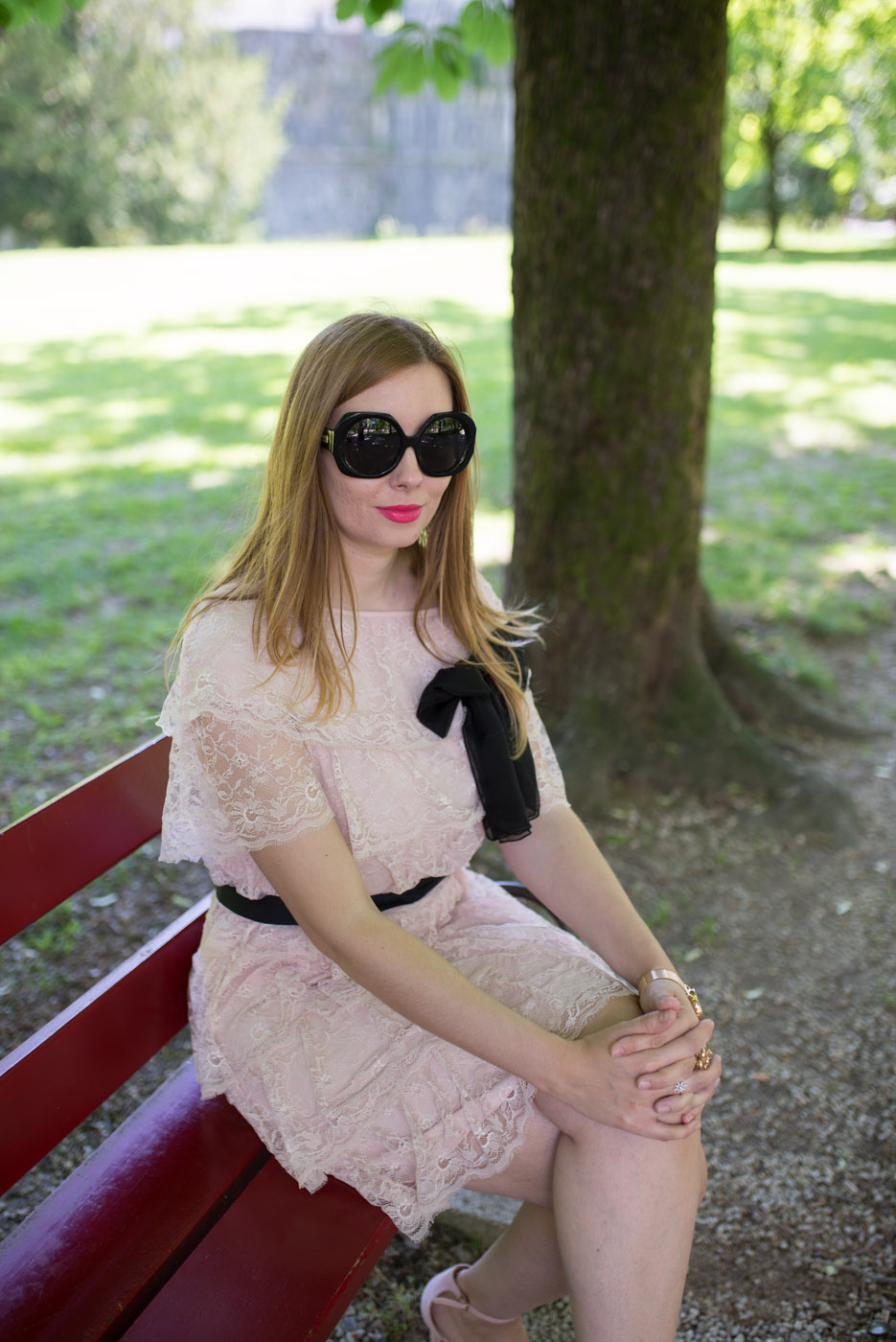 Ho abbinato all’abito in pizzo con la cintura nera ed il fiocco un paio di sandali. Ho scelto accessori dorati: un anello a forma di fiore e l’orologio firmato Timex. Del marchio Timex vi avevo già parlato QUI, solo che questa volta indosso l’orologio con cinturino in acciaio. Adoro questi orologi, perché nella notte, basta premere il pulsante e il quadrante si illumina.