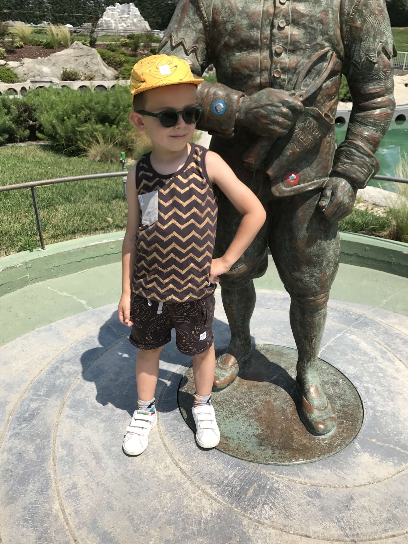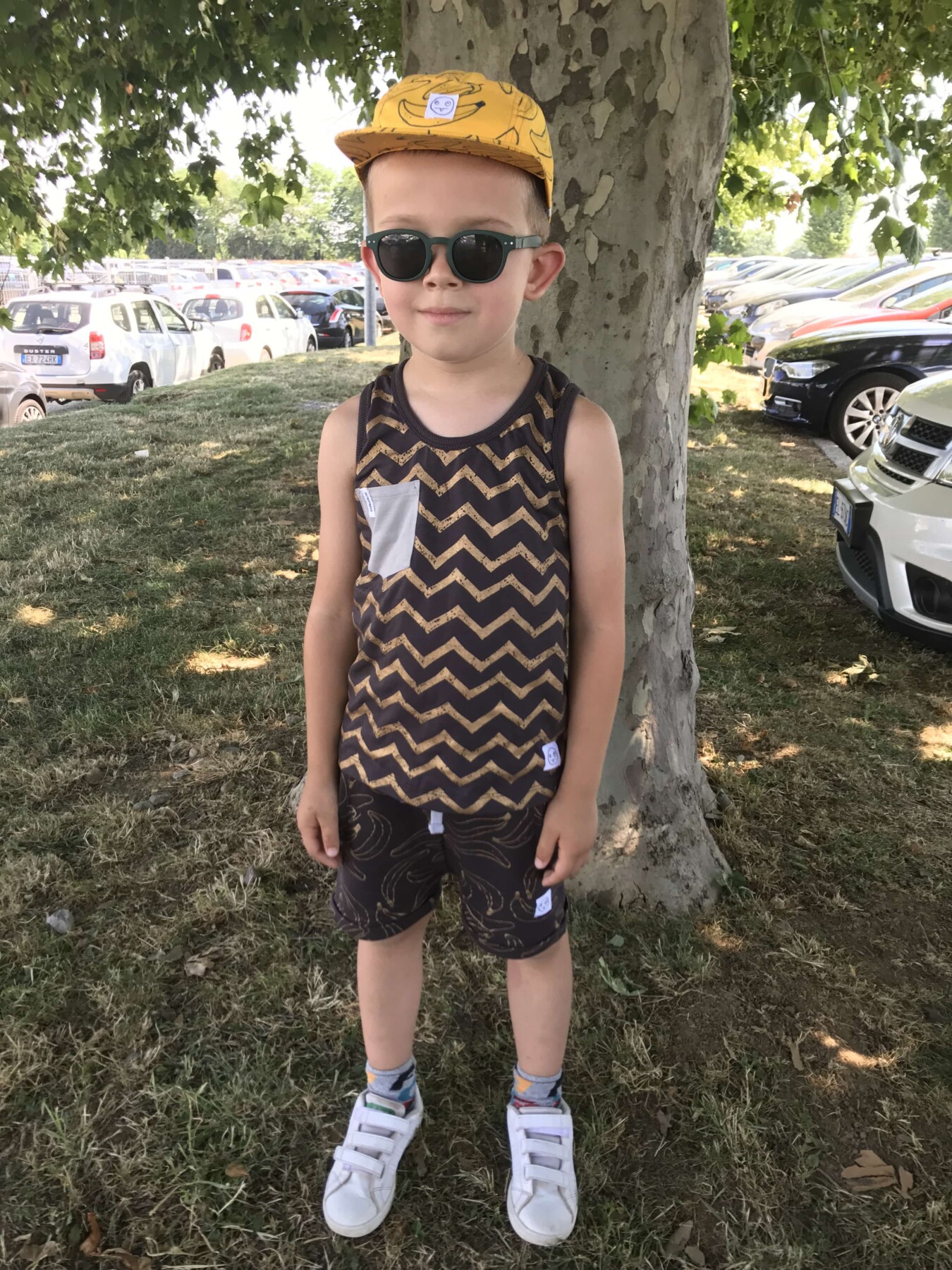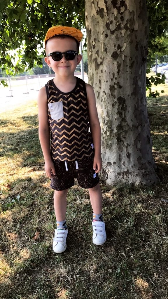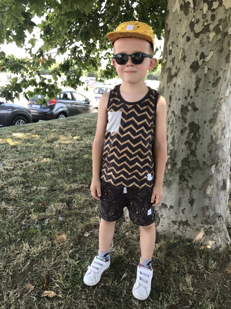Sabato scorso con Mario eravamo a Leolandia a Bergamo e il giorno prima di partire ho pensato bene come vestirlo. Alla fine ho optato per un completino con canottiera e pantaloncini corti. Ovviamente non poteva mancare il cappellino e un paio di scarpe di ginnastica. Ho scelto le scarpe di ginnastica che sandali, che a mio parere sono più comode di quest’ultime. Il total look è firmato Indikidual, il marchio australiano, che fa le collezioni unisex per tutti i bambini di età compresa da 0 a 10 anni. Tutti i capi sono fatti in cottone biologico e si possono creare i look davvero strepitosi. Il marchio è riconoscibile con la stampa di banane, che proprio con questa stampa è stata lanciata la prima capsule collection.