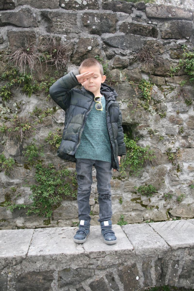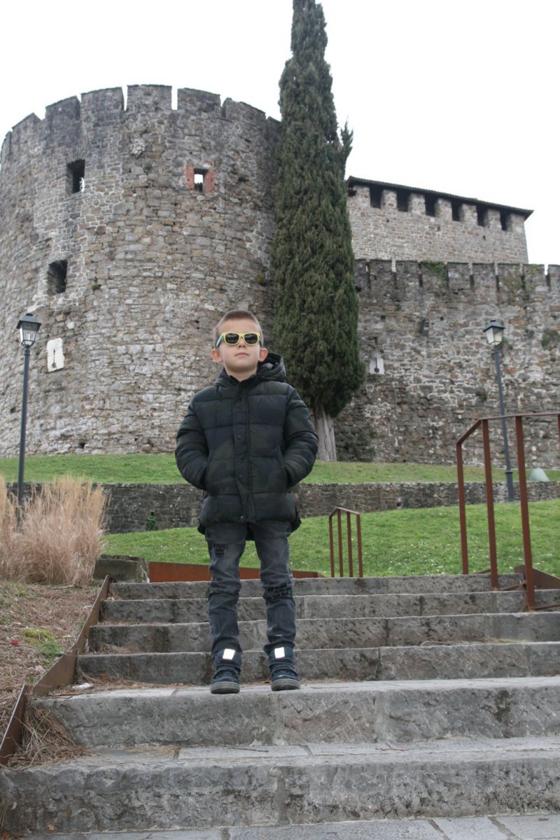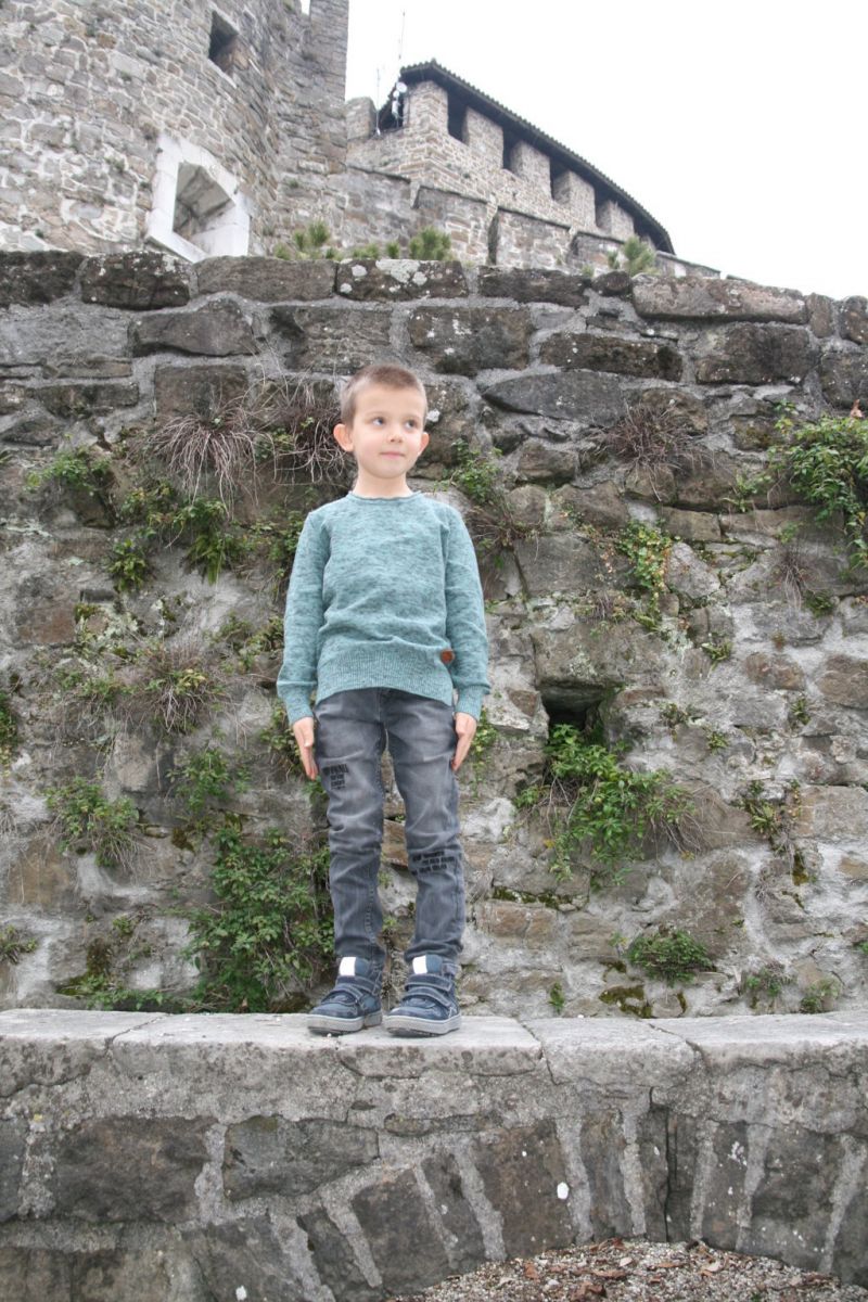 Sabato scorso il tempo non era dei migliori, così siamo andati al castello di Gorizia. Ho fatto alcuni outfit fuori dalle mura del castello, li potete vedere QUI e QUI, ma in tutti questi anni non ho mai visitato l’interno. Mario era felicissimo di andare a visitare il castello. Per quella giornata, per Mario, ho scelto total look firmato Vingino, il marchio olandese leader dei capi in denim. Curano molto la qualità e fanno sì che ogni bambino possa sembrare molto fashion e sentirsi comodi. Il denim è il cuore di tutto ciò che fanno da Vingino ed offrono il miglior denim che c’è sul mercato. Per Mario ho scelto un paio di jeans neri ed un maglioncino verde. I jeans hanno l’aspetto usato e vintage. Ma non sono semplici, visto che hanno dei dettagli particolari come le patch con il testo davanti e una X sulla tasca dietro. Un look comodo per l’esplorazione del castello 🙂